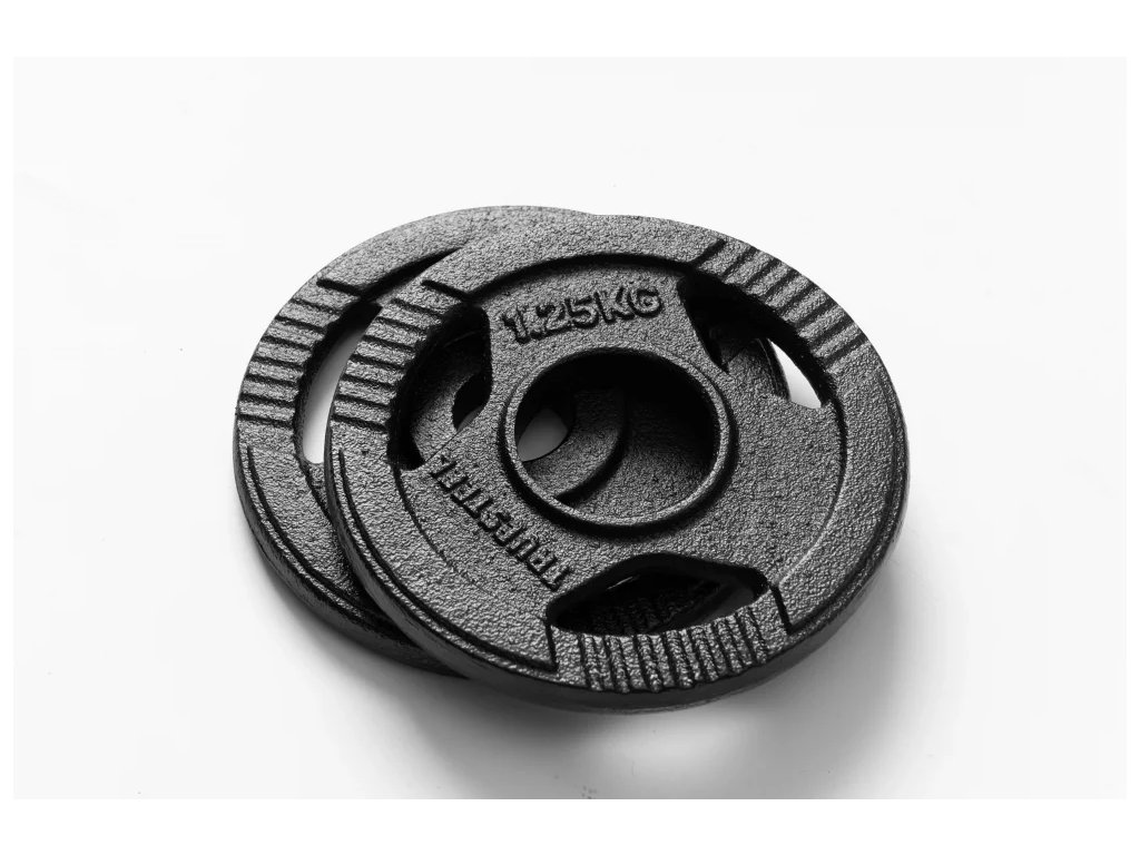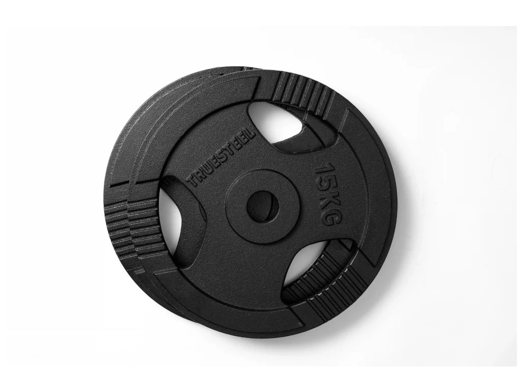 Vsaď na jistotu s litinovými Tri-Grip kotouči! Taky miluješ cinkot klasických kovových kotoučů? Ten, co ti říká, že jedeš naplno? Pak jsou pro tebe naše "old-school" litinové Tri-Grip kotouče to pravé! Ať už jsi úplný začátečník, nebo ostřílený profík, litinové kotouče jsou sázka na jistotu. Jsou to univerzální kotouče, které ti budou spolehlivě sloužit po mnoho let. Tri-Grip kotouče se hodí do každé posilovny – ale pozor, tyhle kotouče nejsou pro zahazování z velkých výšek! Pro zahazování sáhni raději po našich Truesteel bumper kotoučích. Ty vydrží i to nejtvrdší zacházení. Všestranný design? Samozřejmě! Kovový povrch je ošetřen jemnou práškovou barvou a díky přehlednému značení hmotnosti vždy budeš přesně vědět, kolik který kotouč váží. Můžeš zapomenout na starosti s kompatibilitou – středový otvor o průměru 50 mm pasuje na všechny standardní olympijské osy. Díky třem úchopům jsou tyhle kotouče snadno přenosné a neskutečně všestranné. A rozhodně nejsou jen na osu! Používej je samostatně třeba při sedy-lezích se zátěží, Russian twistech nebo výpadech. Proč si vybrat naše litinové Tri-Grip kotouče? ✅ Univerzální použití ✅ Snadná manipulace díky ergonomickým úchopům ✅ Odolnost a dlouhá životnost ✅ Široký výběr hmotností ✅ Standardní průměr otvoru 50 mm Široký výběr Chceš kompletní sadu kotoučů, nebo jen pár kousků na zkoušku? U nás najdeš všechno! Máme pro tebe lehké 1,25 kg kotouče i pořádné 25 kg závaží. Vnější průměr 45 cm Naše 15 až 25 kg kotouče mají vnější průměr 45 cm. Proč je to důležité? Protože díky tomu budeš mít činku v perfektní výšce pro mrtvé tahy, přítahy v předklonu a spoustu dalších cviků. Středový otvor 50 mm Středový otvor o průměru 50 mm – to je jediný oficiální rozměr, který uznávají mezinárodní federace. Tyhle kotouče budou pasovat na každou kvalitní olympijskou osu. 100% garance spokojenosti Veškeré zakoupené zboží můžete do 30 dnů zdarma vrátit bez udání důvodu. To znamená, že zboží, které chcete vrátit, u Vás zdarma vyzvedneme a peníze Vám vrátíme na Vámi zvolený účet do 2 pracovních dnů po navrácení zboží. Stačí nám napsat na info@truesteel.eu nebo zavolat na +420 777670947. Vrácení zboží má 2 podmínky - zboží musíte řádně zabalit, aby se při přepravě nepoškodilo a zakoupené zboží nesmí být poškozené. Garance slouží k prohlédnutí zboží, ne k jeho opakovanému použití.Doplňkové parametry
