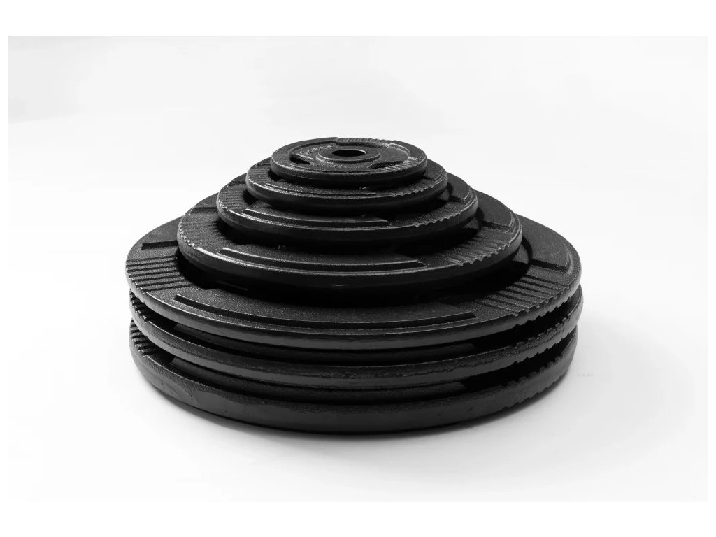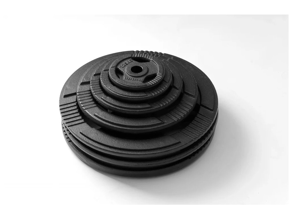 | Průměr kotouče: | 20 kg - 45 cm, 25 kg - 45 cm, 15 kg - 45 cm, 10 kg - 34,6 cm, 5 kg - 26,7 cm, 2,5 kg - 19,7 cm, 1,25 kg - 12,8 cm |