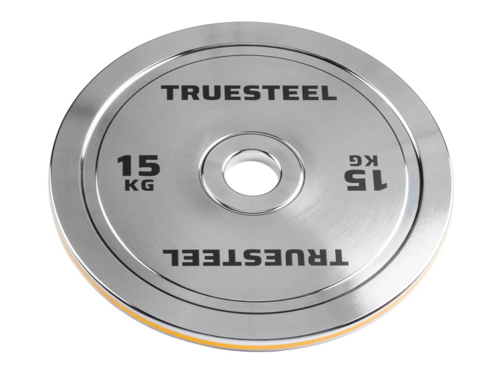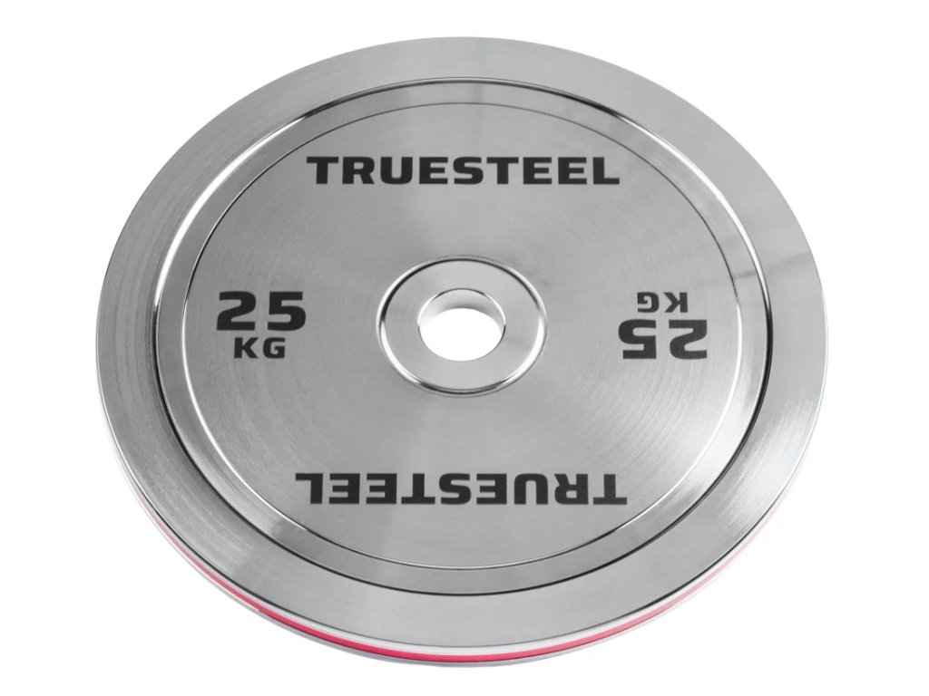 Chromované kotouče Truesteel: Odolné kotouče pro náročné Pozvedněte svůj trénink na novou úroveň s našimi chromovanými kotouči, které spojují vysokou odolnost, stylový design a přesnou váhu. Tyto kotouče jsou ideální pro každého, kdo hledá kvalitní a zároveň stylové vybavení do posilovny. Kovové kotouče s leštěným chromovaným povrchem vynikají vysokou tvrdostí, odolností proti korozi i mechanickému opotřebení. Díky zřetelnému značení hmotnosti pomocí elegantního barevného pruhu vždy předem víte, kolik který váží. Středový otvor o průměru 50 mm je vhodný pro všechny standardní olympijské osy. Přední část doplňuje logo Truesteel, umocňující elegantní design kotoučů. Hlavní výhody chromovaných Truesteel kotoučů: ✅ Dlouhá životnost: Chromování chrání kotouče před korozí a zajišťuje jejich dlouhou životnost. ✅ Přesná váha: Kalibrovaná váha kotoučů s maximální odchylkou 10 gramů pro maximálně přesnou zátěž a efektivní trénink. ✅ Stylový design: Chromovaný povrch dodává kotoučům moderní a elegantní vzhled, který se bude vyjímat v každé posilovně. ✅ Široká škála hmotností: Kotouče jsou k dispozici v rozmezí 5-25 kg, což umožňuje postupné zvyšování zátěže a přizpůsobení tréninku individuálním potřebám. ✅ Tenké provedení: Tenký profil umožňuje naložit na osu více kotoučů a přizpůsobit trénink individuálním potřebám. Vyvýšené hrany Díky speciálně vyvýšeným hranám bude manipulace s kotouči rychlá a jednoduchá. Zřetelné značení hmotnosti Díky přehlednému značení váhy pomocí barevných pruhů budete už z dálky vědět, po kterém kotouči sáhnout. 50 mm průměr otvoru Nejuniverzálnější a také jediný oficiální rozměr mezinárodních federací. Tyto kotouče budou pasovat na každou kvalitní olympijskou osu. 100% garance spokojenosti Veškeré zakoupené zboží můžete do 30 dnů zdarma vrátit bez udání důvodu. To znamená, že zboží, které chcete vrátit, u Vás zdarma vyzvedneme a peníze Vám vrátíme na Vámi zvolený účet do 2 pracovních dnů po navrácení zboží. Stačí nám napsat na info@truesteel.eu nebo zavolat na +420 777670947. Vrácení zboží má 2 podmínky - zboží musíte řádně zabalit, aby se při přepravě nepoškodilo a zakoupené zboží nesmí být poškozené. Garance slouží k prohlédnutí zboží, ne k jeho opakovanému použití.Doplňkové parametry