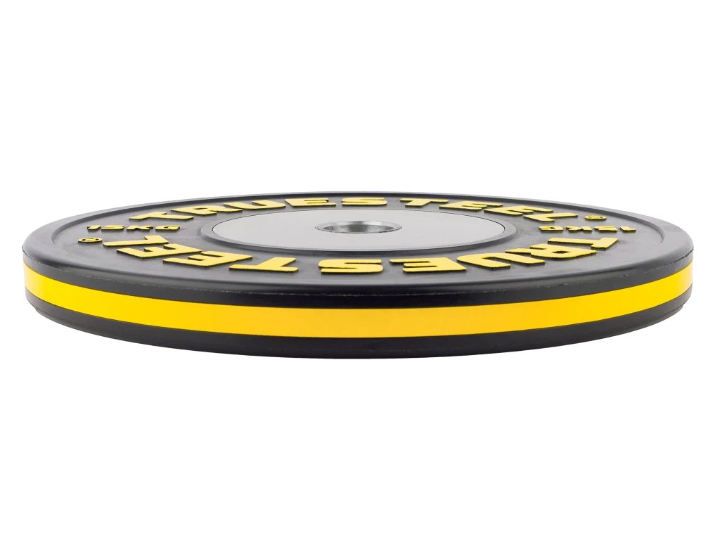 Kde ostatní kotouče končí, Truesteel bumper kotouče se teprve zahřívají Obyčejné bumper kotouče se dělají z recyklované pryže a z levných plastových směsí. Takové kotouče vydrží od 3 000 do 15 000 dopadů. Trh je takovými nekvalitními levnými kotouči z Číny přehlcen. Bohužel, pak to také ve fitkách dle toho vypadá. Kotoučům začínají vypadávat středy, ohýbají se a po čase se začnou úplně rozpadat. Majitelé fitness zakazují lidem házet s osou naloženou takovými kotouči, a nevědomky si tak odrazují klienty a přichází o spousty peněz. Nechte naše kotouče stát se dokonalým partnerem Vašich klientů při tréninku. Poznejte závodní bumper kotouče Truesteel Truesteel Závodní bumper kotouče jsou zárukou prvotřídní kvality a spokojenosti klientů Vaší posilovny. Spojte své jméno s naší značkou a vsaďte na nekompromisní kvalitu našich produktů. Barevně rozlišená hmotnost Zřetelné rozlišení hmotnosti pomocí elegantního barevného pruhu Vám usnadní hledání vámi požadované váhy. Barvy odpovídají pravidlům federací IPF a IWF. Pevné ocelové jádro Pevné ocelové jádro s pochromováním dodává kotoučům potřebnou pevnost a to i při těch nejtvrdších dopadech, zároveň umožňuje velice pohodlné a rychlé nasazení a sundání kotoučů. 50 mm průměr otvoru Nejuniverzálnější a také jediný oficiální rozměr mezinárodních federací. Naše kotouče jsou tak skvělou volbou při přípravě Vašich klientů na soutěž. Nejodolnější kotouče Naše kotouče jsou stále odolnější. Nová úprava směsi kotoučů zajišťuje, že kotouče vydrží 40 000 dopadů. Minimální odskok Bumpery mají minimální odskok (bounce), aby cvičení bylo bezpečnější. Jsou užší, na činku můžete naložit i 320 kg nebo dokonce i více (při použití převážně 25 kg kotoučů). Luxus a prestiž Závodní bumper kotouče jsou nejluxusnější verzí bumper kotoučů. Se závodními bumper kotouči to u Vás v posilovně bude vypadat jako na Crossfit games. Prémiový gumový povrch To, co odlišuje naše kotouče od ostatních je nejen prémiová guma, ale též její obsah s příměsí kaučuku. Kombinace těchto látek se podílí na mimořádné životnosti. Rozměry a parametry Kotouče mají minimální váhovou odchylku (maximálně 20 g). Obyčejné kotouče mívají odchylky i více než 2 kilogramy! Všechny bumper kotouče mají vnější průměr 450 mm, vnitřní průměr je 50 mm. 100% garance spokojenosti Veškeré zakoupené zboží můžete do 30 dnů zdarma vrátit bez udání důvodu. To znamená, že zboží, které chcete vrátit, u Vás zdarma vyzvedneme a peníze Vám vrátíme na Vámi zvolený účet do 2 pracovních dnů po navrácení zboží. Stačí nám napsat na info@truesteel.eu nebo zavolat na +420 777670947. Vrácení zboží má 2 podmínky - zboží musíte řádně zabalit, aby se při přepravě nepoškodilo a zakoupené zboží nesmí být poškozené. Garance slouží k prohlédnutí zboží, ne k jeho opakovanému použití.Doplňkové parametry