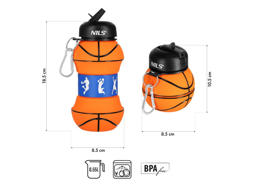 Skládací silikonová láhev NILS Camp NC4104 550ml basketbal