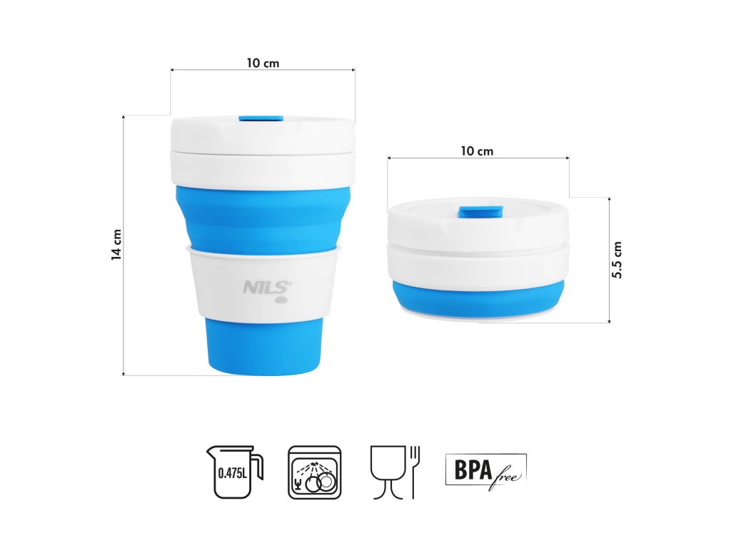 Skládací silikonový hrnek NILS Camp NC4103 475ml modrý