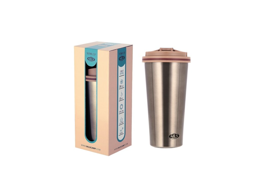 Termohrnek NILS Camp NCB18 se vyznačuje jednoduchou konstrukcí a originálním designem! Termohrnek je vyroben z nerezové oceli s dvojitou stěnou, která zaručuje uchování teplých nápojů po dobu 12 hodin a studených po dobu 24 hodin, nezáleží tedy, zda si do hrnku připravíte ranní kávu, kterou vypijete cestou do práce a nebo zda si do něj přelijete oblíbenou limonádu a vezmete si jej s sebou na několikahodinovou procházku do přírody, termohrnek udrží Váš nápoj ve správné teplotě. Model NCB18 má velmi pohodlný systém otevírání. Stačí zatáhnout za páčku a je hotovo. Silikonový výlisek ve víčku zamezuje rozlití nápoje, pokud je hrnek zavřený. Další velkou výhodou je, že spodní část hrnku je opatřena protiskluzovou gumou, která zvyšuje bezpečnost před rozlitím horké kávy nebo čaje, když je hrnek otevřený!
