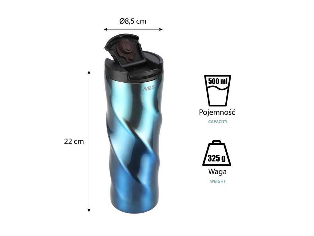 Termohrnek NILS Camp NCB22, o objemu 0,5 litru, se vyznačuje jednoduchou konstrukcí a originálním designem!