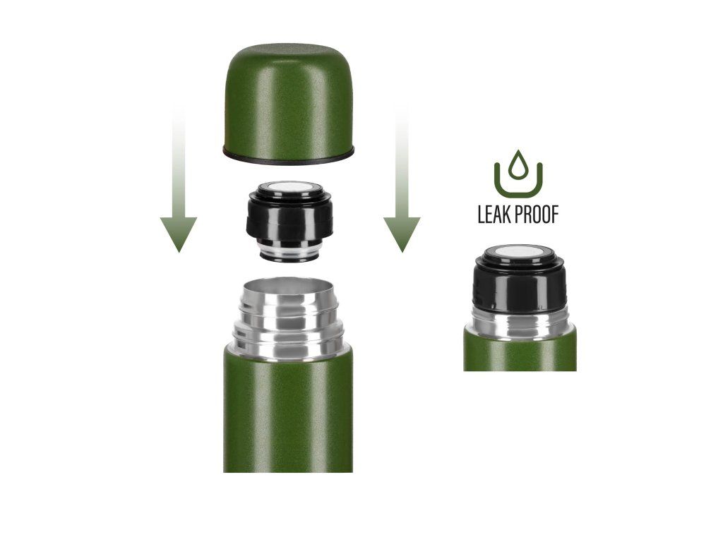 Těsná konstrukce eliminuje riziko úniku obsahu, takže nezáleží v jaké poloze je termoska přepravována. Termoska má průměr 8,2 cm, dobře padne do ruky, snadno se vejde do standardních držáků v autě i do bočních kapes batohů. Výška 32,8 cm zajišťuje, že je zároveň prostorná a praktická.