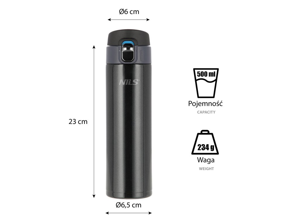 Termoska NILS Camp NCB28 se vyznačuje jednoduchou konstrukcí a originálním designem! Termoska je vyrobena z nerezové oceli s dvojitou stěnou, která zaručuje uchování teplých nápojů po dobu 12 hodin a studených po dobu 24 hodin, nezáleží tedy, zda si do termosky připravíte ranní kávu, kterou vypijete v kanceláři a nebo zda si do ní přelijete oblíbenou limonádu a vezmete si jej s sebou na několikahodinovou procházku do přírody, termoska udrží Váš nápoj ve správné teplotě. Model NCB28 má velmi pohodlný systém otevírání. Stačí stisknout tlačítko a je hotovo. Ve víčku je plastový zobáček, který usnadňuje vylévání nápoje a silikonový výlisek, který zamezuje rozlití nápoje, když je víčko zavřené, pokud termosku potřebujete umístit do polohy, kde by hrozilo otevření víčka, můžete jej pomocí posunutí tlačítka zamknout.