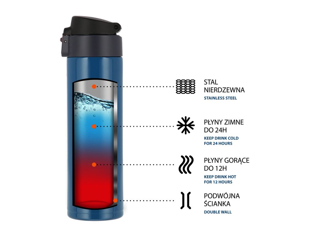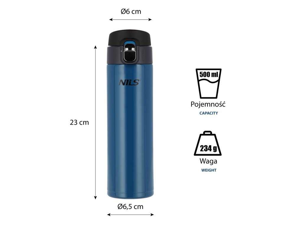 Termoska NILS Camp NCB28 se vyznačuje jednoduchou konstrukcí a originálním designem! Termoska je vyrobena z nerezové oceli s dvojitou stěnou, která zaručuje uchování teplých nápojů po dobu 12 hodin a studených po dobu 24 hodin, nezáleží tedy, zda si do termosky připravíte ranní kávu, kterou vypijete v kanceláři a nebo zda si do ní přelijete oblíbenou limonádu a vezmete si jej s sebou na několikahodinovou procházku do přírody, termoska udrží Váš nápoj ve správné teplotě. Model NCB28 má velmi pohodlný systém otevírání. Stačí stisknout tlačítko a je hotovo. Ve víčku je plastový zobáček, který usnadňuje vylévání nápoje a silikonový výlisek, který zamezuje rozlití nápoje, když je víčko zavřené, pokud termosku potřebujete umístit do polohy, kde by hrozilo otevření víčka, můžete jej pomocí posunutí tlačítka zamknout.