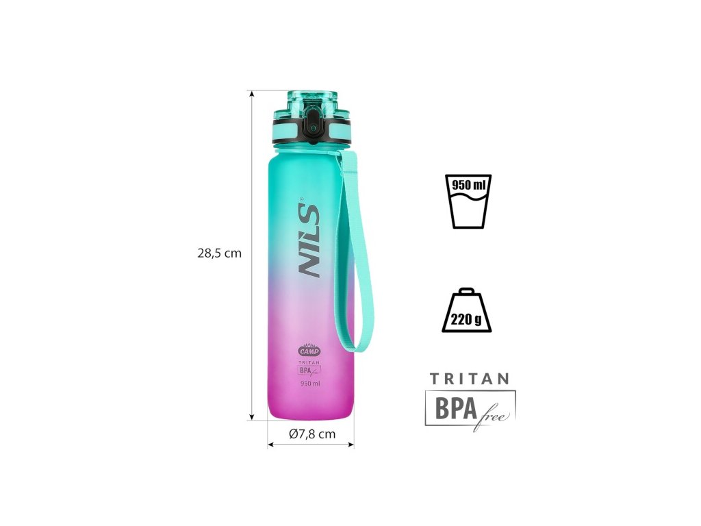 NILS Camp NCD04 je láhev na vodu o objemu 950 ml a je vyrobena z tritanu.