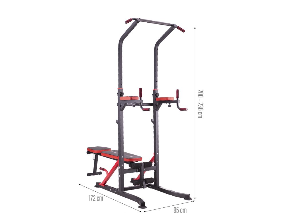 PWL8324 je vyrobena z nejkvalitnějších materiálů. Všechny rukojeti jsou potaženy protiskluzovým materiálem, který zaručuje pevný úchop při cvičení. Hrazdu lze výškově nastavit v rozsahu 200 - 236 cm. Lavička jde sklopit pro úsporu místa.