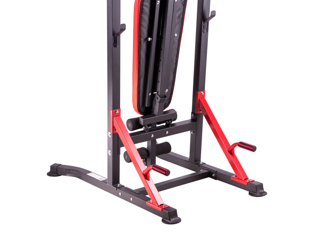 HMS PWL8324 je multifunkční hrazda s podpěrami, bradly a polohovatelnou lavicí. Umožní vám komplexně procvičit všechny svalové skupiny horní poloviny těla - hrudník, zádové svaly, tricepsy a břicho.