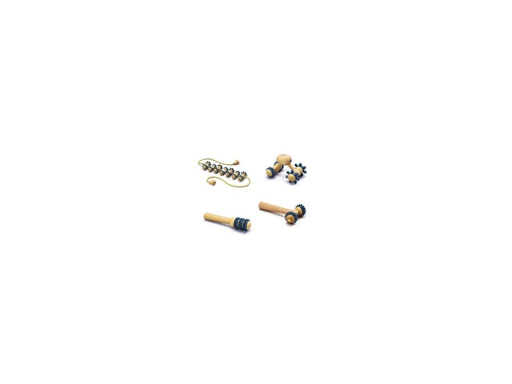 Sedm párů různě tvarovaných masážních "knoflíků" pro efektivní, ale velmi jednoduchou masáž celých zad a oblasti ramen. Rukojeti z bukového dřeva.