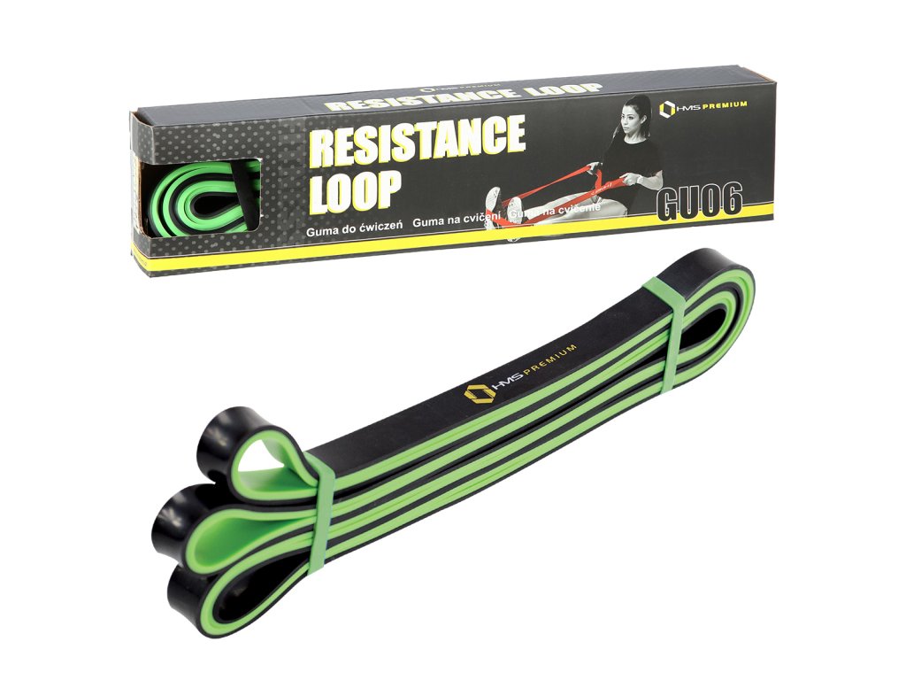 Posilovací, nebo odporová guma HMS Premium GU06 jak je tato pomůcka nazývána, se využívá zejména jako dopomoc při shybech, tricepsových klicích a dalších variacích cviků. Posilovací gumy jsou velmi často též využívány při rehabilitačním cvičení. Díky tomu, že se nejedná o přímou zátěž, ale guma postupným tahem vytváří odpor, je často užívaným rehabilitačním doplňkem při úrazech svalů, šlach a kloubů.