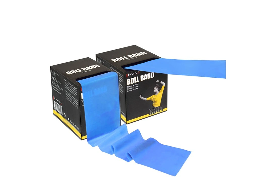 Role odporové gumy HMS o délce 50 m a rozměrech 0,8 x 150 mm. Posilovací guma HMS je využívana v silovém tréninku, kondičním tréninku, ale i v rehabilitačním cvičení. V silovém tréninku slouží jako dopomoc nebo jako dynamická zátěž. Při rehabilitaci jsou využité protože se nejedná o přímou zátěž, ale guma postupným tahem vytváří odpor a to především při úrazech svalů, šlach a kloubů.