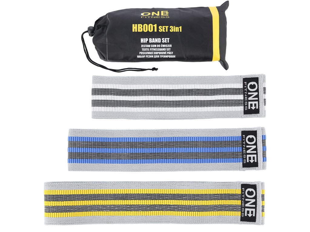 ONE Fitness HB001 je sada odporových "gum" typu Hip band, které se používají primárně pro trénink hýžďových svalů a svalů dolních končetin. HB001 lze použít jako samostatný nástroj, nebo v kombinaci s jinými cviky, jako pomůcka ke stížení tréninku, například při dřepech s činkou. Ideální uplatnění najde při rozcvičce, pár úkroků s Hip bandem HB001 na stehnech Vám zaručeně rozehřeje svaly dolních končetin.