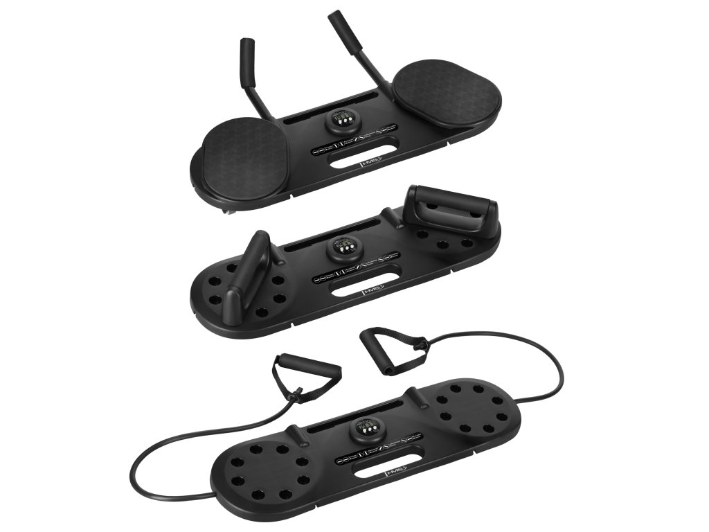 Trénuj celé tělo doma — s přesným časovačem, podpěrami na kliky, podložkou pro plank, expandéry a možností montáže koleček. HMS DBP02 3v1 kombinuje stabilitu základny, dynamiku kliků a odporový trénink v jednom setu.