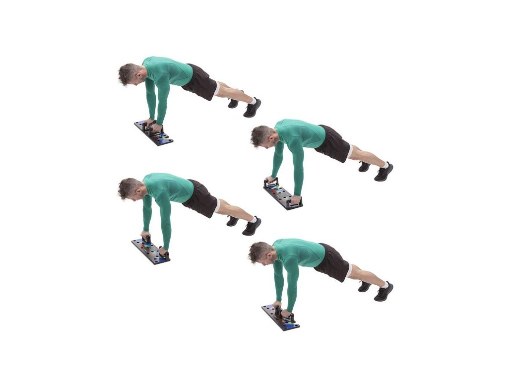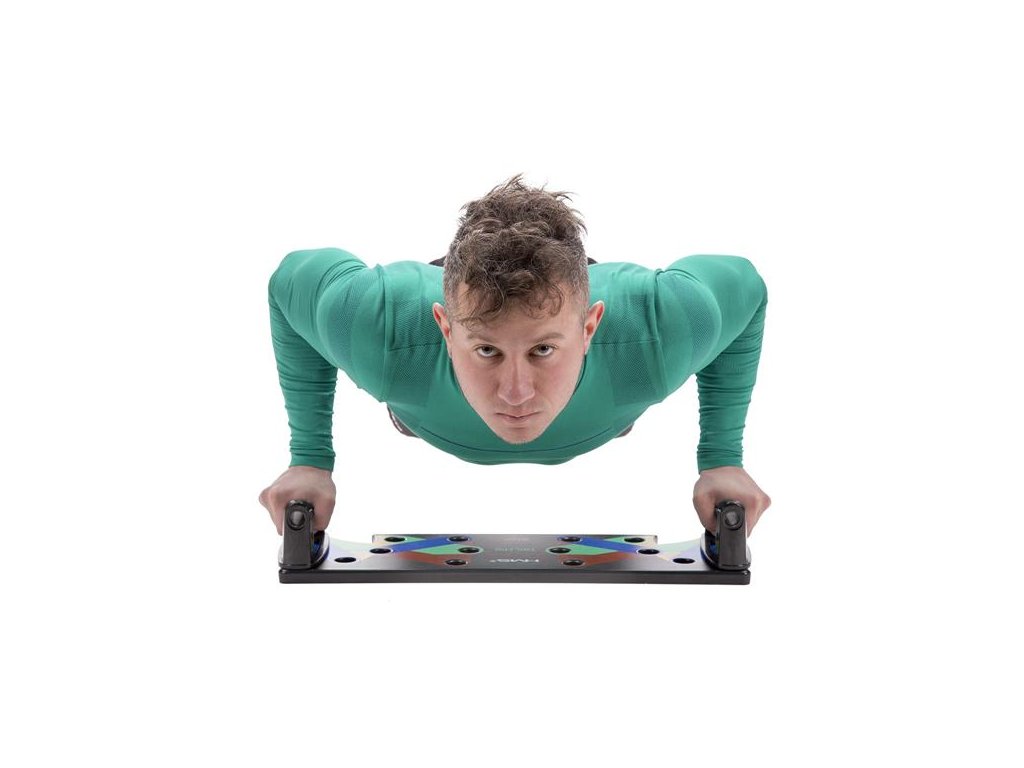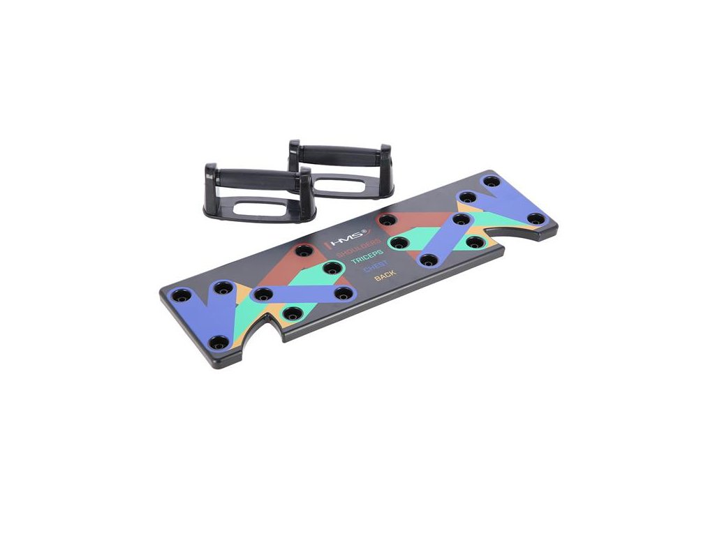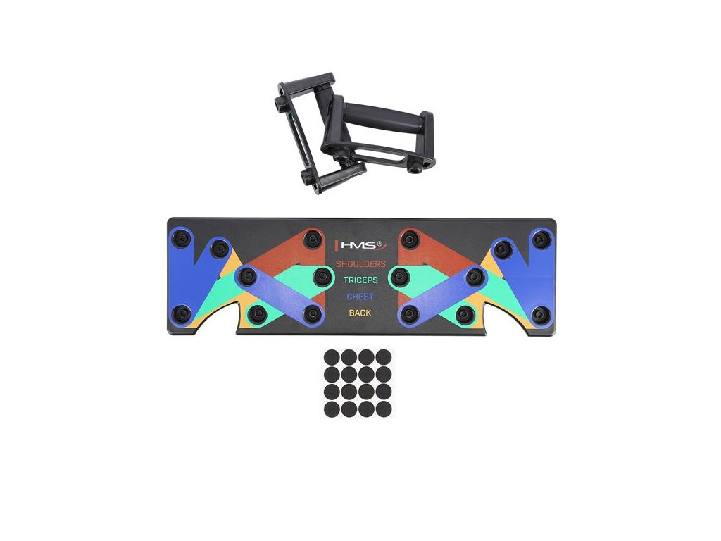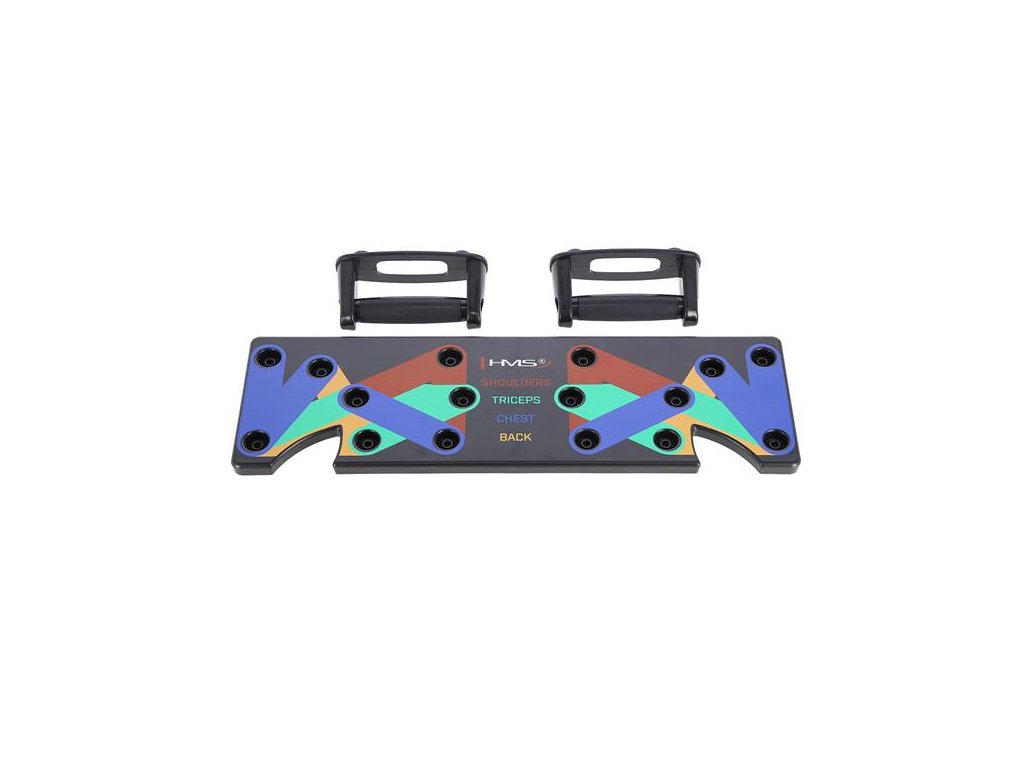 PU10 HMS je multifunkční, skládací deska, která umožňuje variabilní trénink kliků. Deska je symetricky rozdělena na 2 poloviny, kdy každá část obsahuje 5 párů otvorů pro umístění dodávaných podpěr. Každý pár otvorů umožňuje trénink pod jiným úhlem, kdy se procvičuje jiná svalová skupina a to: