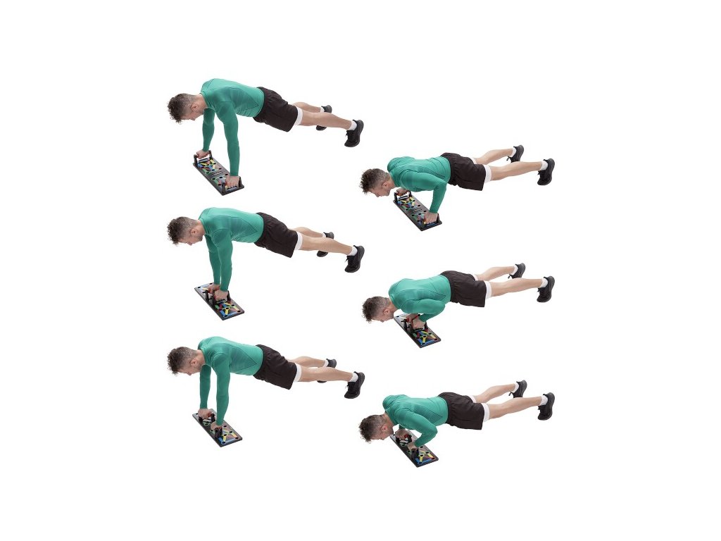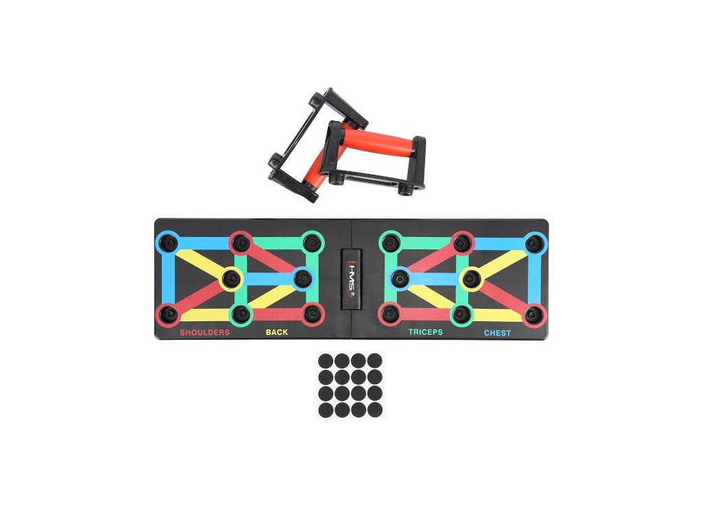 PU12 HMS je multifunkční, skládací deska, která umožňuje variabilní trénink kliků. Deska je symetricky rozdělena na 2 poloviny. PU12 obsahuje 8 párů otvorů pro umístění dodávaných podpěr. Každý pár otvorů umožňuje trénink pod jiným úhlem, kdy se procvičuje jiná svalová skupina a to: