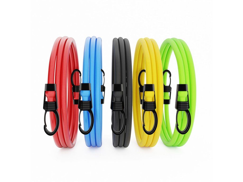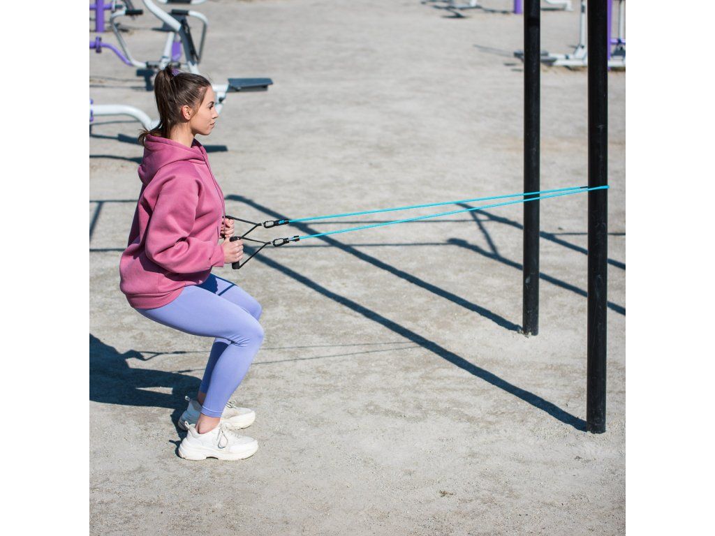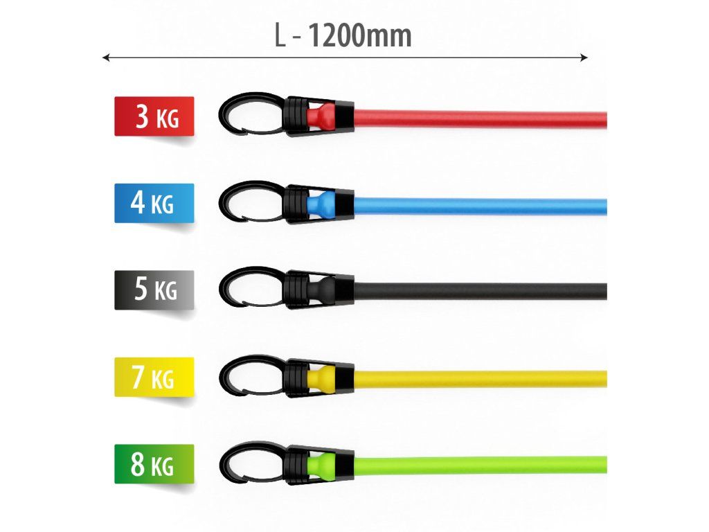 Každá dvojice gum má jinou tuhost, která vám umožní vybrat různé úrovně intenzity cvičení. Na každé z gum může být rukojet, což umožňuje realizaci komplexního tréninku všech svalových skupin.