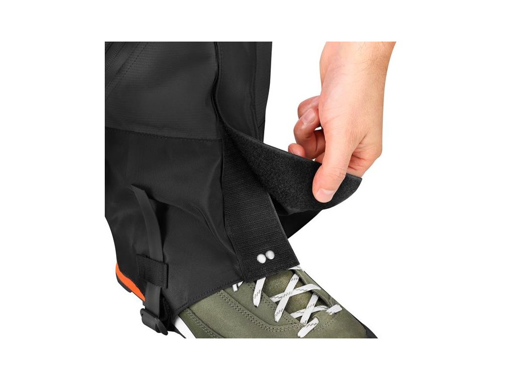 Návleky se nasazují velmi snadno díky zapínání na suchý zip, které umožňuje jejich rychlé přizpůsobení noze. Spodní část se zapne pomocí řemínku pod botou a háčkem za tkaničky, návlek pak pevně přiléhá ke svršku obuvi a chrání jej před vlhkostí i nečistotami. Celá konstrukce je navržena s důrazem na maximální jednoduchost použití a účinnost v terénu.