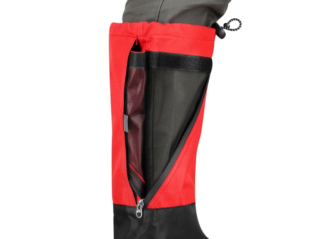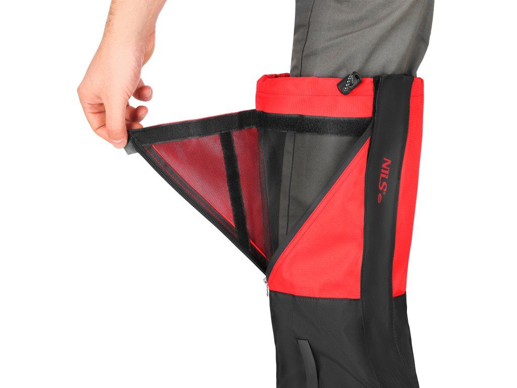V horní polovině návleků je umístěna klopa na zip a suchý zip, pod kterou se nachází síťovina zajišťující odvětrávání nohy v případě, kdy se zrovna nebrodíme hlubokým sněhem. Klopu lze navíc jednoduše založit do postranní kapsy, aby při chůzi nijak nepřekážela, což zvyšuje pohodlí a praktičnost návleků.