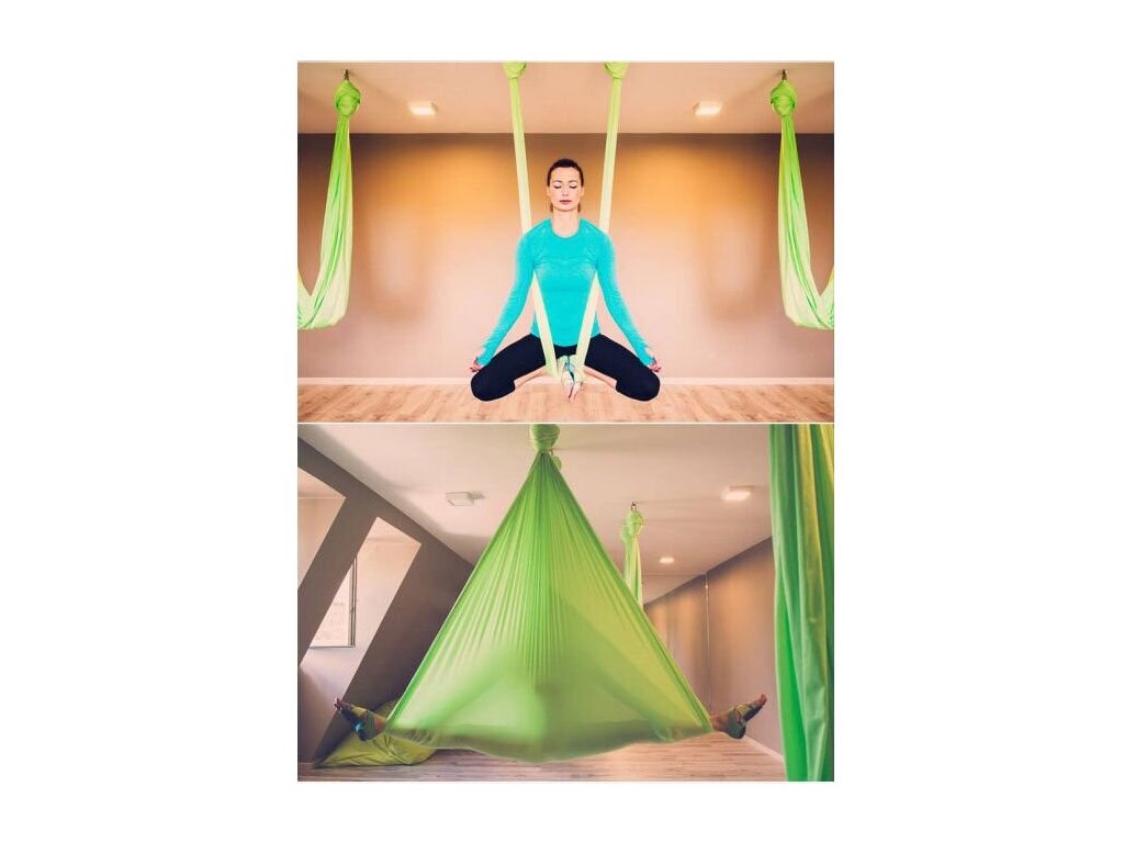 Cvičit jógu ve vzduchu, nebo také aerial, aero, anti-gravity či fly jógu, je stále více populární. Ne však každý si může dovolit vlastní vybavení pro tento druh cvičení, když po několika málo lekcích získá přirozenou potřebu si koupit síť vlastní. Merco Yoga Hammock je vynikající volbou pro každého, kdo touží po vlastním vybavení na aerial jógu a má omezený rozpočet. Síť s rozměry 5 x 2,5 metru je vyrobena z dakronové textilie (kopolyester), která je navržena tak, aby byla připevněna ke stropu, přes trám nebo přes větev, pro cvičení jednoduchých i obtížných poloh jógy. Obrácené pozice (hlavou dolů) působí proti otokům, křečovým žilám a mají také příznivý vliv na oběhovou soustavu: celý krevní oběh se rozproudí, lépe se okysličuje mozek a tím se uvolňuje i mysl. Při zavěšení těla hlavou dolů odhlehčíte krční páteři a přirozeným tahem působíte na páteř. Merco jóga síť lze připevnit pomocí pevných karabin a popruhů na závěsné háky ke stropu. Síť je nutné vždy instalovat v místech s dostatečným prostorem pro cvičení. Do interiérů je Yoga Hammock vhodná, pokud je výška stropu od 2,6 do 3,2 m. Hmotnostní zatížení sítě závisí na tom, jakým způsobem ji zamýšlíte používat. Pokud ji budete používat pouze pro domácí cvičení, bude pak plně vyhovovat vašim potřebám i při plném vytížení. Merco síť na jógu není určená pro cvičení sestav více než jedné osoby nebo ke komerčnímu využití. Merco Yoga Hammock je vynikající volba za dostupnou cenu pro každého, kdo hledá spolehlivé vybavení pro aerial jógu nehledě na to, jestli je začátečníkem nebo již má mnohé zkušenosti s tímto mladým a oblíbeným sportem.