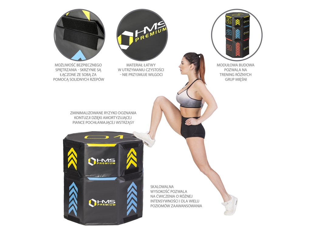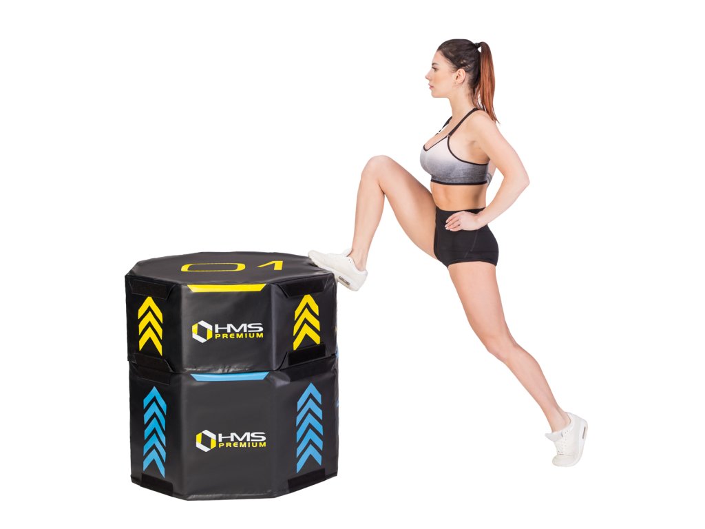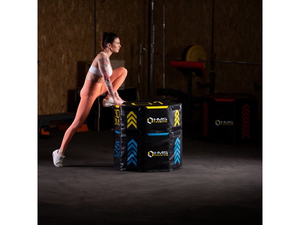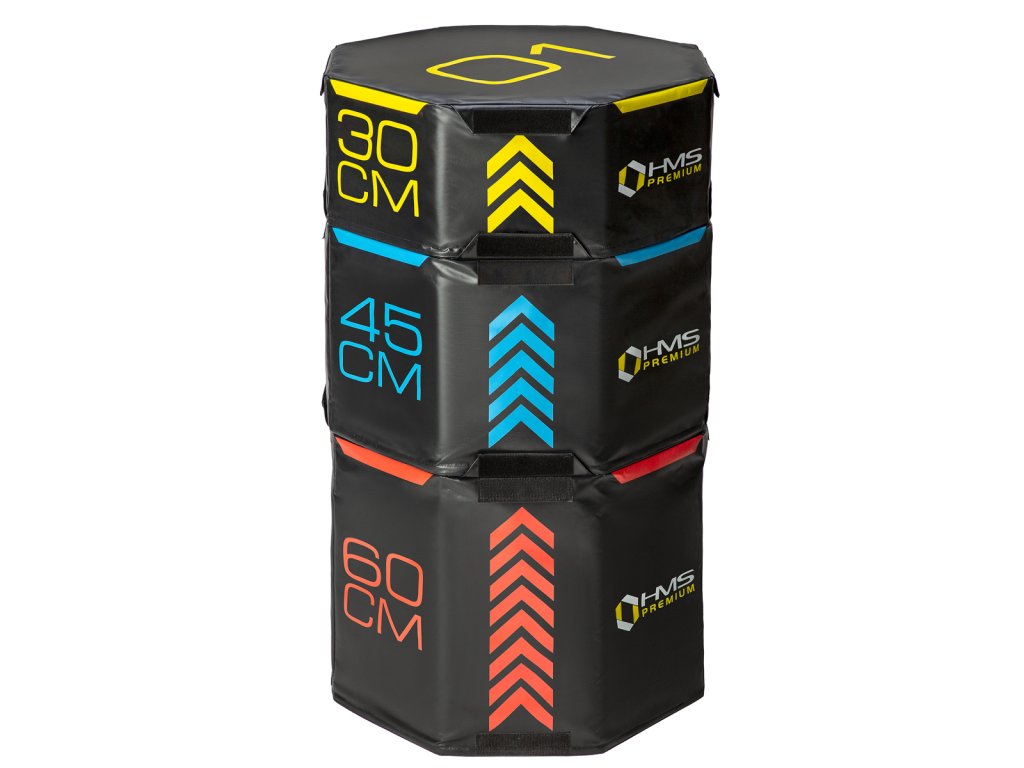 HMS Premium PYOBS01 je sada tří měkkých, šestihranných plyometrických skříní o různé výšce.