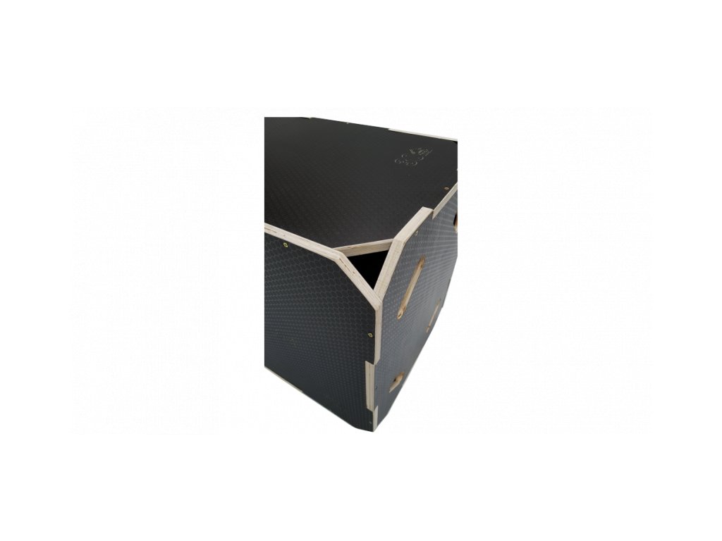 Vylepšený dřevěný plyobox vhodný ke Crossfitu a funkčnímu tréninku je vyrobený z masivních dřevěných překližek na CNC stroji. Hlavním a nepřehlédnutelným benefitem tohoto boxu je vnější protiskluzová fólie. Neklouzavý povrch oceníte v náročných WOODech, kde Vám hrozí uklouznutí a následný pád způsobený kluzkým nebo mokrým povrchem.