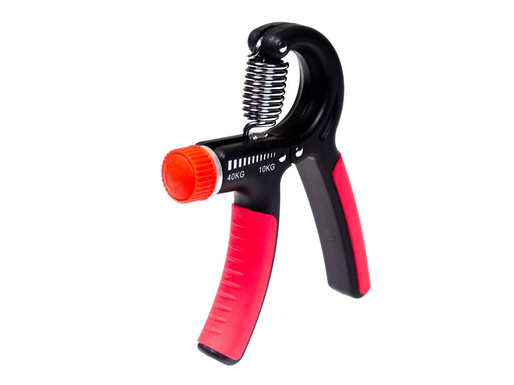 Posilovač zápěstí s tvarovanou rukojetí a nastavitelným odporem stisku. Účelem je posílení zápěstí a svalů předloktí.