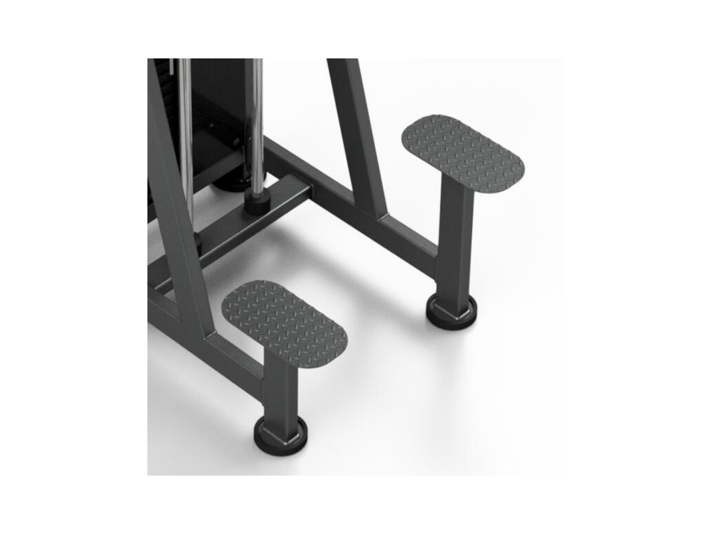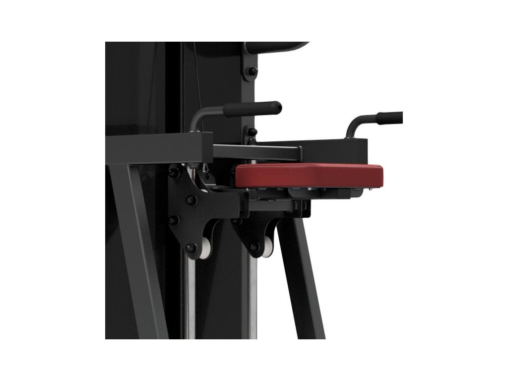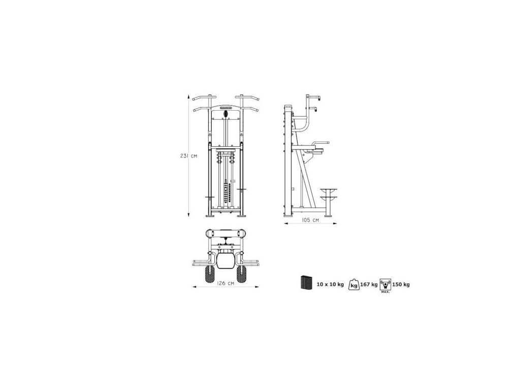 Multifunkční hrazda s dopomocí MARBO MP-U231 je nekompromisní, profesionální vybavení pro Vaší posilovnu. Pro výrobu byly zvoleny ocelové profily 120x60x3mm a 80x40x3mm, které zaručují nečekanou trvanlivost. Zátěž tvoří 10ks 10kg cihel. Celková váha závaží dodávána se strojem je tedy 100kg. Stroj disponuje dvěma nášlapy z drážkovaného plechu o rozměrech 32x17cm a každý je v jiné výšce. Jejich umístění a rozměr minimalizují riziko poranění, ale usnadňují výstup do pracovní pozice. Polstrovaní je ze syntetické kůže sešité režnou nití značky COATS vyplněné tvrdou pěnou, to celé ja na 3mm hrubé, ocelové desce. Tichý chod zajištuje zakrytování černým plastem, z přední části je kryt opatřen průhledem pro snadné nastavení požadovaného počtu cihel. Stroj je navíc opatřen velikou samolepkou, která instruuje cvičence, jaké cviky jdou na stroji provádět a které skupiny svalů daný cvik posiluje.