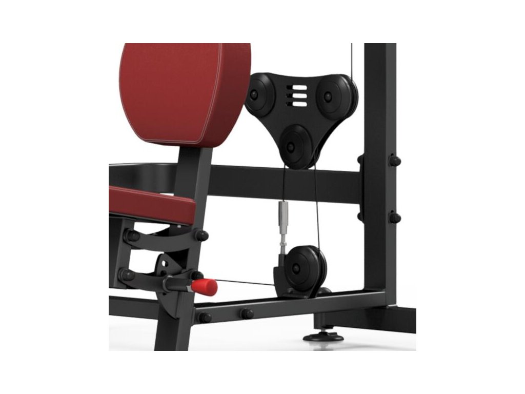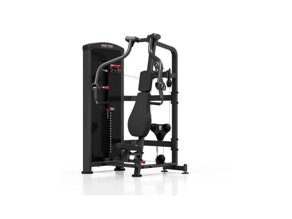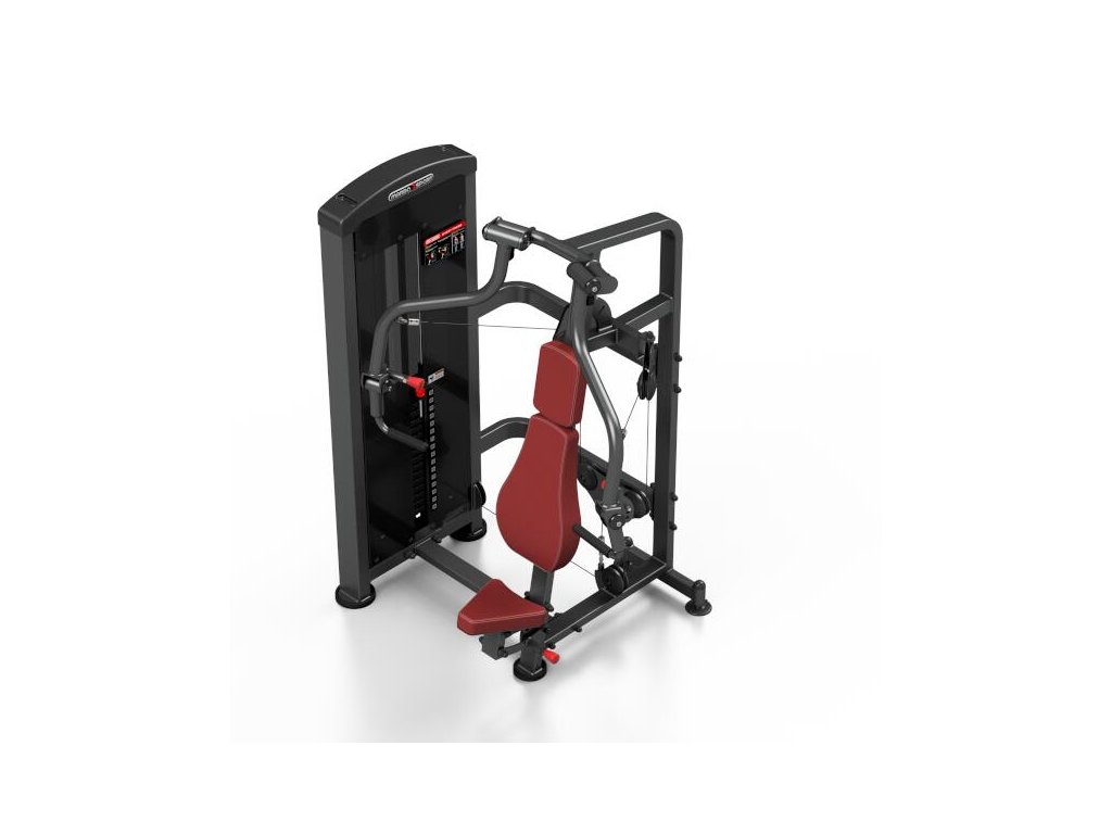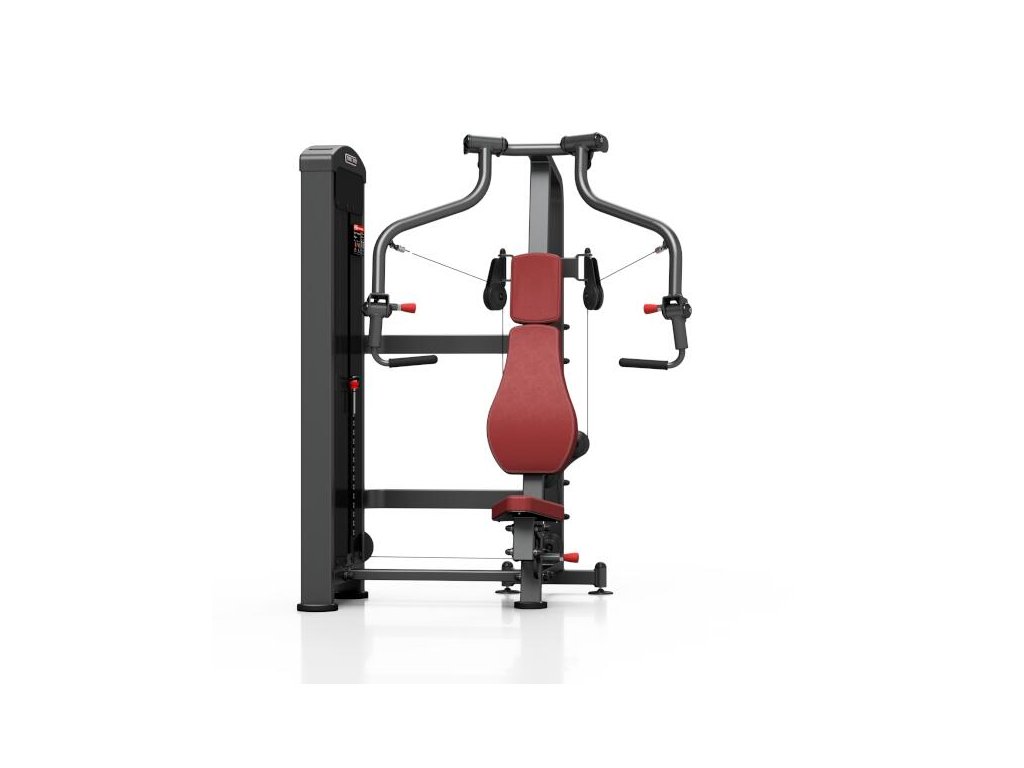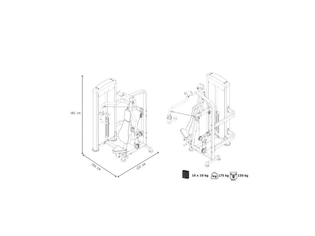 Stroj pro posílení prsních svalů MARBO MP-U225 je nekompromisní, profesionální vybavení pro Vaší posilovnu. Pro výrobu byly zvoleny ocelové profily 120x60x3mm a 80x40x3mm, které zaručují nečekanou trvanlivost. Zátěž tvoří 16ks 10kg cihel. Celková váha závaží dodávána se strojem je tedy 160kg. Ramena mají na sobě nezávislý chod. To zaručuje vysokou efektivitu tréninku. Veškeré nastavení se provádí červenými, pneumatickými kolíky. Sedadlo má čtyři polohy, ramena mají tři polohy. Polstrovaní je ze syntetické kůže sešité režnou nití značky COATS vyplněné tvrdou pěnou, to celé ja na 3mm hrubé, ocelové desce. Tichý chod zajištuje zakrytování černým plastem, z přední části je kryt opatřen průhledem pro snadné nastavení požadovaného počtu cihel. Stroj je navíc opatřen velikou samolepkou, která instruuje cvičence, jaké cviky jdou na stroji provádět a které skupiny svalů daný cvik posiluje.