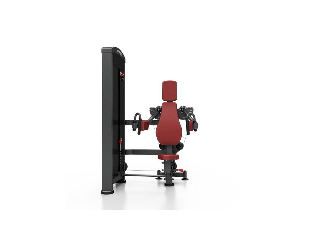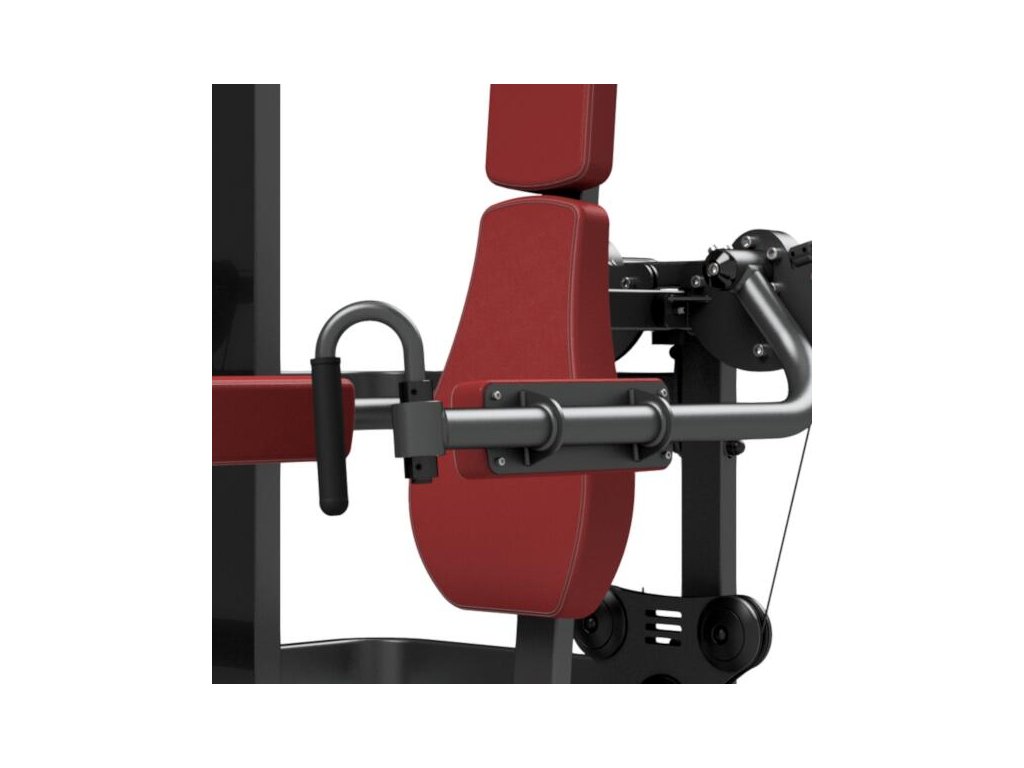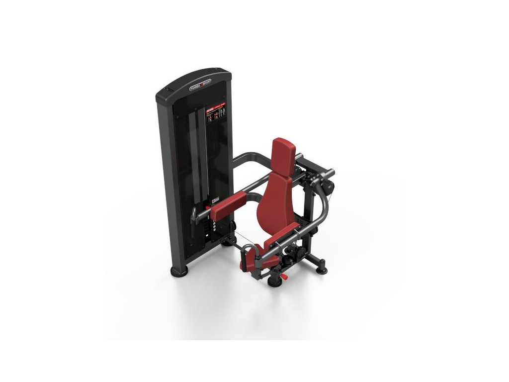 Stroj pro posílení deltových svalů MARBO MP-U228 je nekompromisní, profesionální vybavení pro Vaší posilovnu. Pro výrobu byly zvoleny ocelové profily 120x60x3mm a 80x40x3mm, které zaručují nečekanou trvanlivost. Zátěž tvoří 8ks 5kg cihel. Celková váha závaží dodávána se strojem je tedy 40kg s možností rozšíření až do 160kg. Ramena mají na sobě nezávislý chod. To zaručuje vysokou efektivitu tréninku. Veškeré nastavení se provádí červenými, pružinovými kolíky. Sedadlo má čtyři polohy. Polstrovaní je ze syntetické kůže sešité režnou nití značky COATS vyplněné tvrdou pěnou, to celé ja na 3mm hrubé, ocelové desce. Tichý chod zajištuje zakrytování černým plastem, z přední části je kryt opatřen průhledem pro snadné nastavení požadovaného počtu cihel. Stroj je navíc opatřen velikou samolepkou, která instruuje cvičence, jaké cviky jdou na stroji provádět a které skupiny svalů daný cvik posiluje.