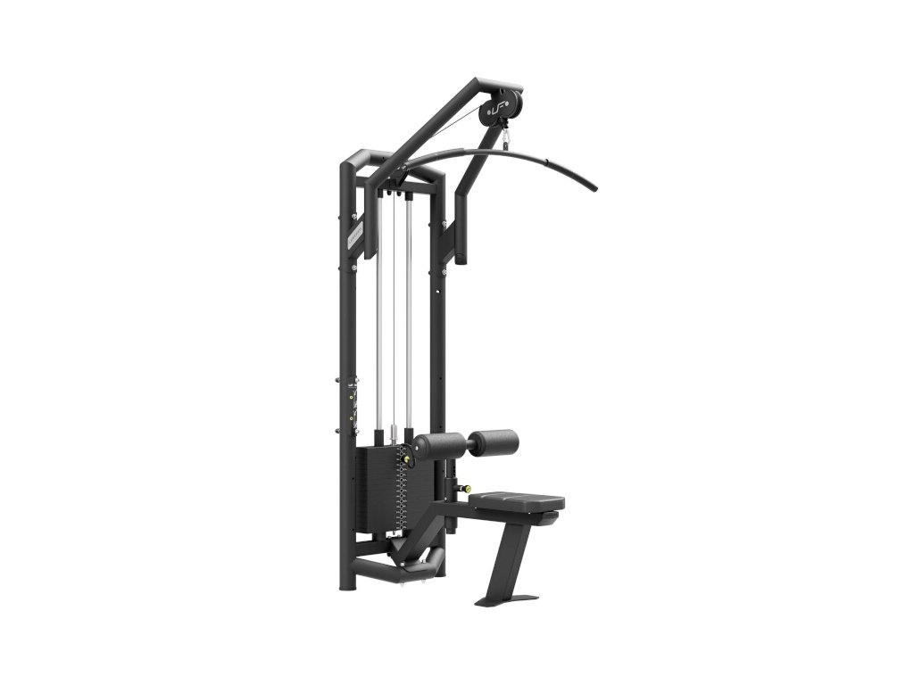 Vrchní kladka UpForm UF-003 je vybavena sadou závaží čítající 16 cihel o celkové hmotnosti 120 kilogramů odstupňovaných po 7,5 kg. Volič váhy je opatřen nálepkami pro rychlou volbu požadované zátěže a jistící čep je připevněn na lanku, takže nehrozí jeho ztráta. Stanice je opatřena sedátkem a zarážkou nohou, která je výškově nastavitelná pomocí pružinového, jistícího kolíku. Na samotné sedátko bylo použito perforované čalounění, které zajišťuje dostatečnou ventilaci a odvod vlhkosti. Horní rameno se nachází ve výšce 233 centimetrů, na stroji tak může pohodlně trénovat kdokoliv do výšky 200 cm. Veškeré kladky jsou schovány pod kovovými kryty s logem UpForm. Ocelové lanko je pokryto černým PVC, je zakončeno masivním okem a je odpruženo gumovým tlumičem.