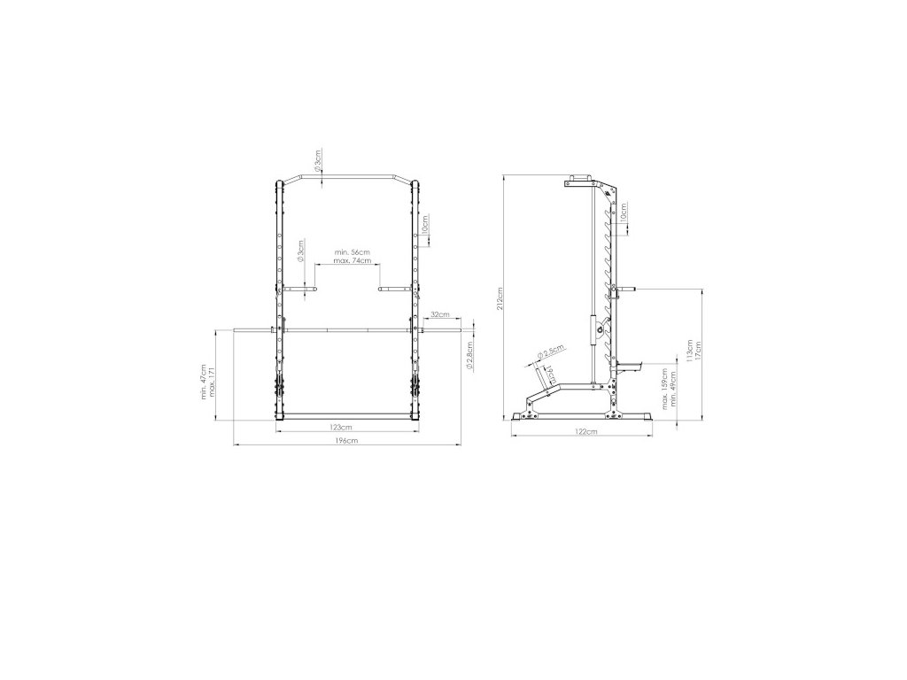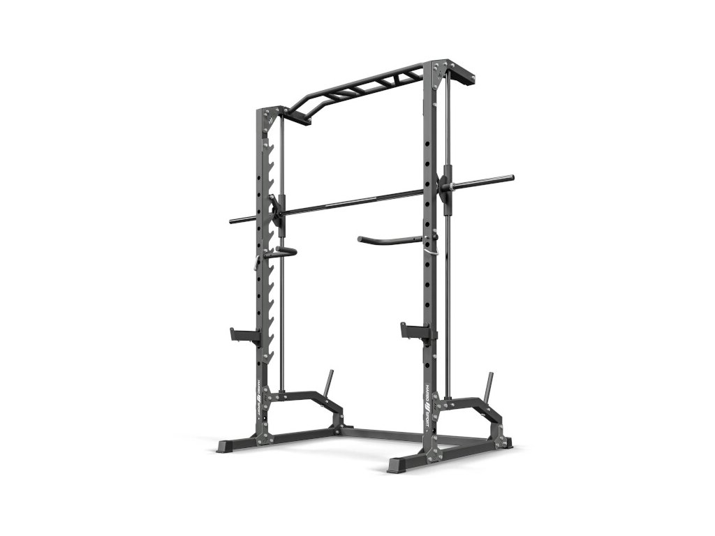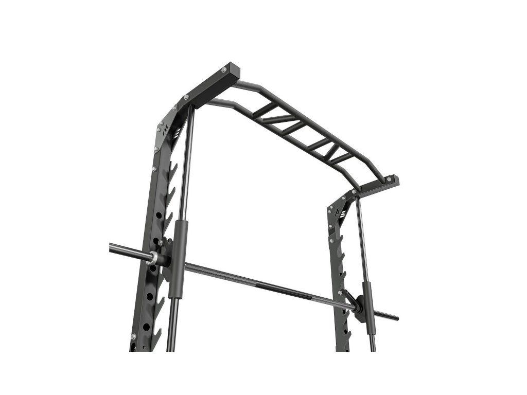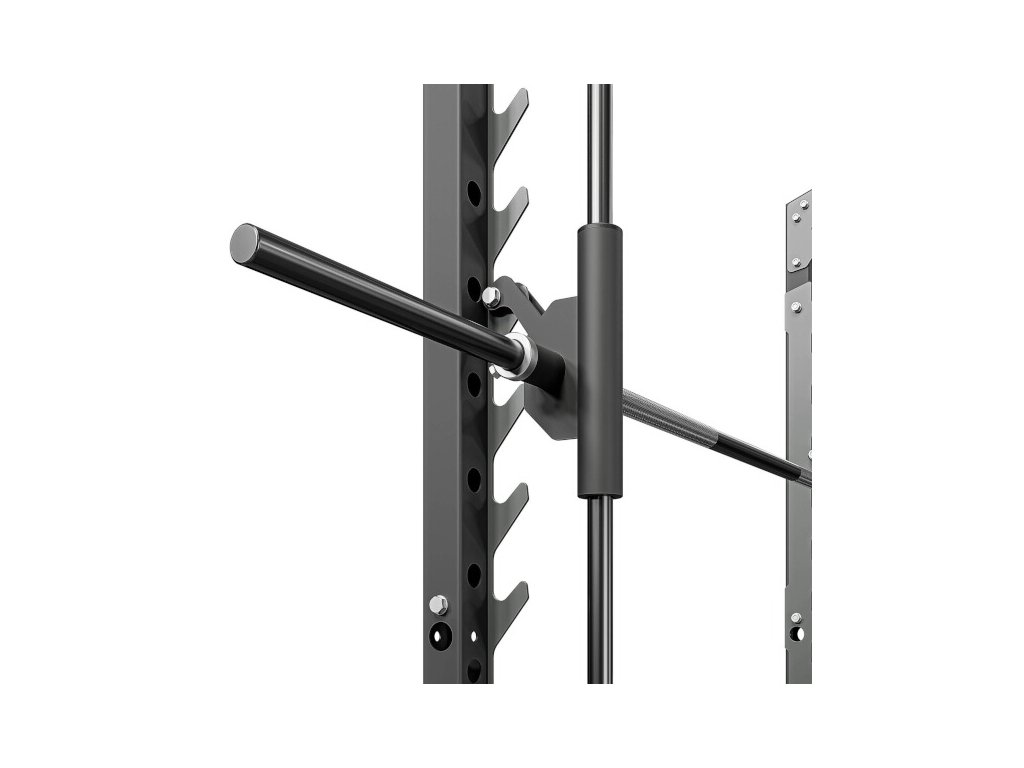 Konstrukce MS-U105 2.0 je vybavena dvěma sadami nastavitelných háků na obouruční činku, které vám umožní uložit činku do optimální výšky pro právě prováděný cvik. Háky lze nastavit v 11 výškových úrovních v rozmezí 49 - 159 cm od země. Tato funkce nabízí skvělé tréninkové možnosti, například umožňuje cvičit dřepy s činkou. Přidáním lavičky k posilovacímu stroji MS-U105 2.0 získáme sestavu, kterou lze s úspěchem použít pro trénink hrudníku.