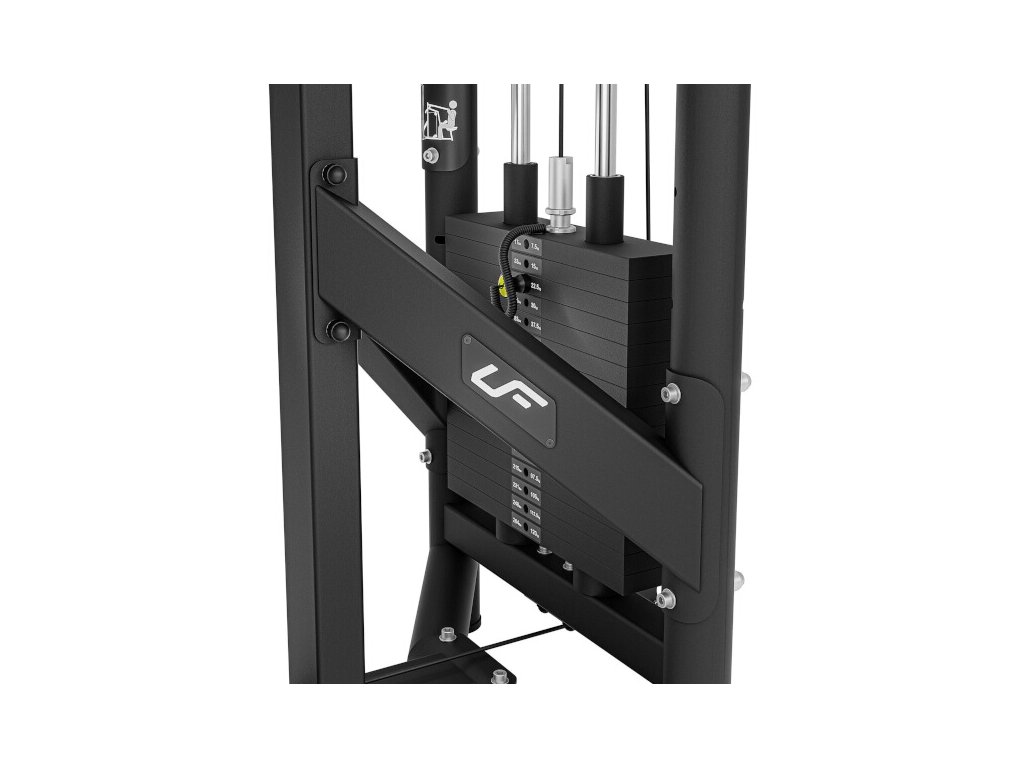 Stahování horní kladky UpForm UF-020 je profesionální tréninková věž určená pro náročné uživatele. Díky chytrému designu, velikosti zásobníku a okamžité změně zátěže je věž ideální pro silový a sportovní trénink. Konstrukcí je stanice určena pro použití v komerčních posilovnách, fitnesscentrech nebo klubech. Rám je vyroben z ocelových profilů 100 x 60 x 3 milimetry a ocelových trubek s profilem 60,3 x 3,2 mm a 76,1 x 3,2 milimetrů, které zaručují vysokou stabilitu konstrukce a její dlouhou životnost i při náročném trénování s plně využívanou sadou závaží.