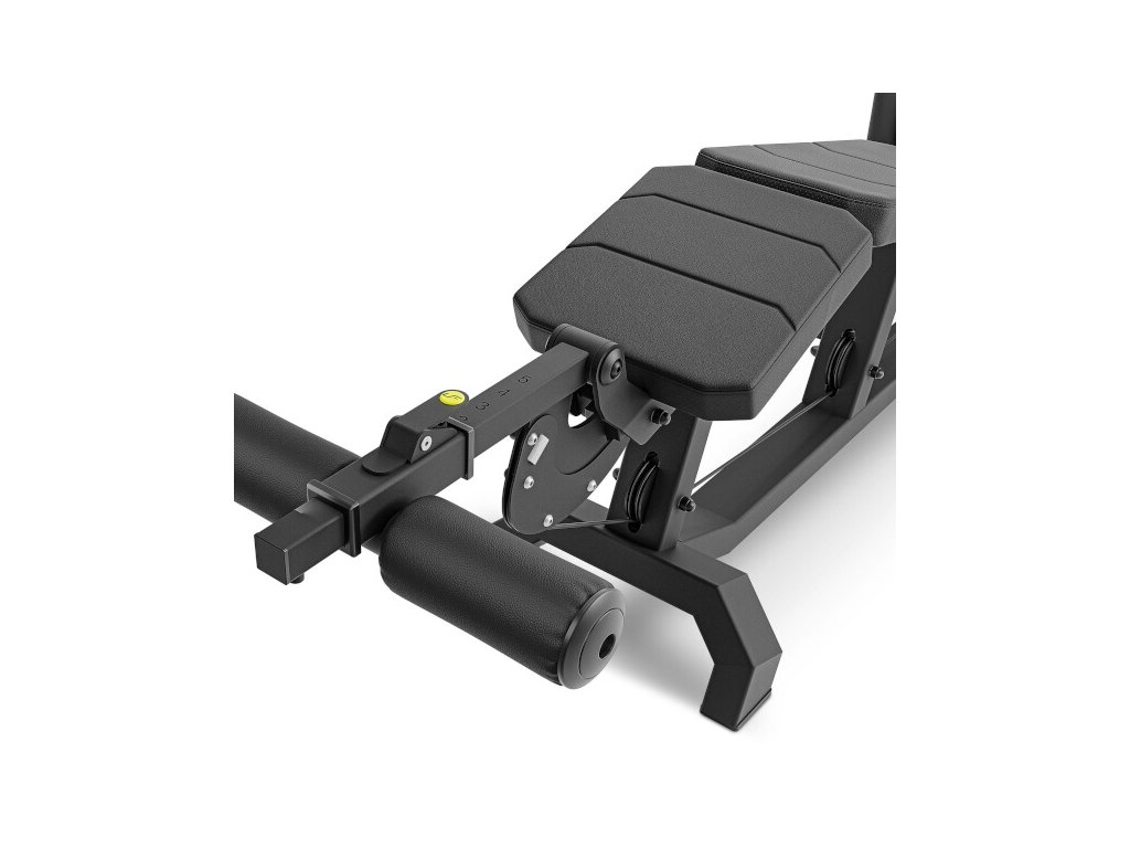 UpForm UF-023 má zarážku nohou nastavitelnou do 5-ti poloh po stisku páky a lze ji tedy perfektně přizpůsobit výšce cvičence. Zásobník závaží obsahuje 16 cihel o hmotnosti 7,5 kilogramů, k dispozici tedy je 120 kilogramů zátěže. Jednotlivá závaží jsou opatřena nálepkou pro rychlou volbu požadované zátěže jak v kilogramech, tak v librách. Čep pro výběr hmotnosti je vyroben z hliníku a je připevněn ke kroucenému lanku, takže nehrozí jeho ztráta. Na sedák a opěru bylo použito perforované čalounění, které zajišťuje dostatečnou ventilaci a odvod vlhkosti. Na rámu se nachází štítek s ilustrací cviku, který lze na stanici provádět.