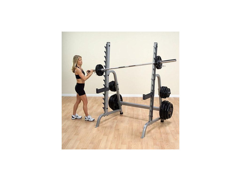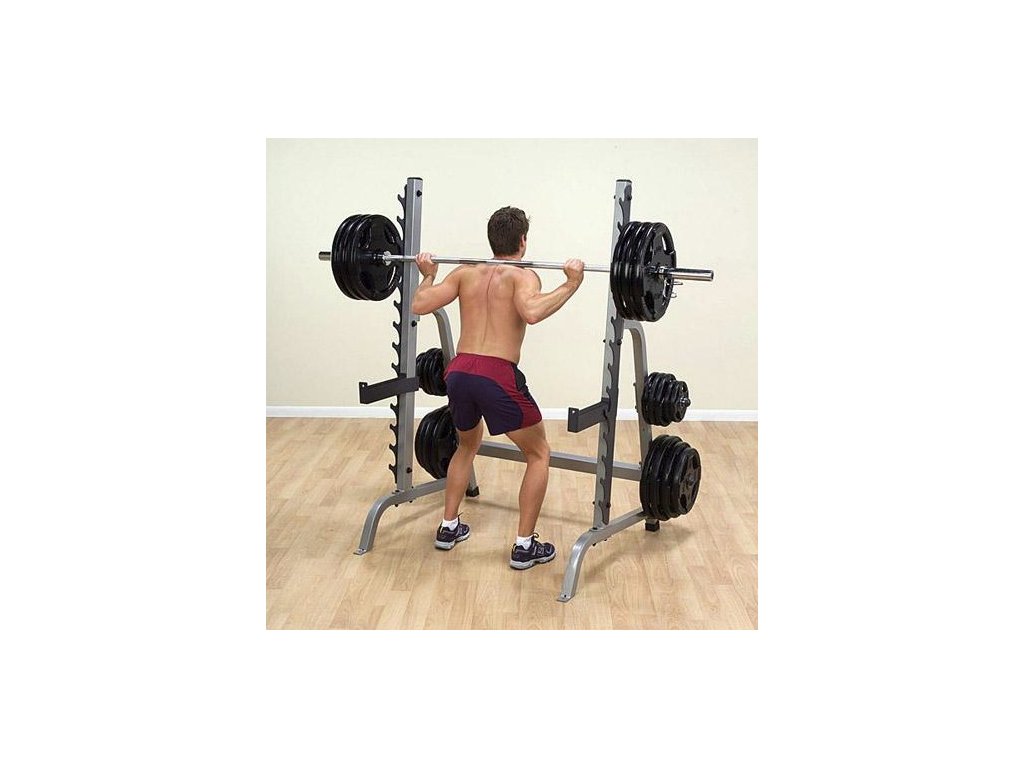 Multipress Body Solid GPR370 je dřepovací a tlakový stojan s nosností 450 kg. Na tomto skvělém stojanu se 14 polohami můžete cvičit s 454 kg váhy. Velké ocelové pojistky vám pomohou více chránit vaše tělo před úrazem. Pevné ocelové zarážky udrží půl tuny.