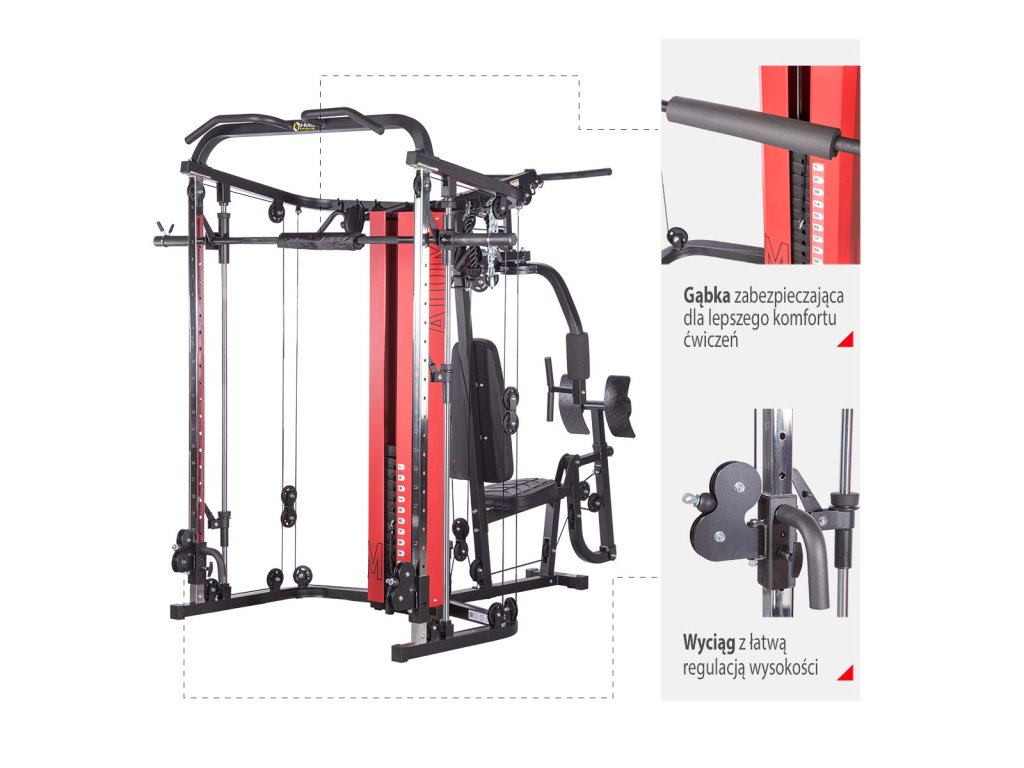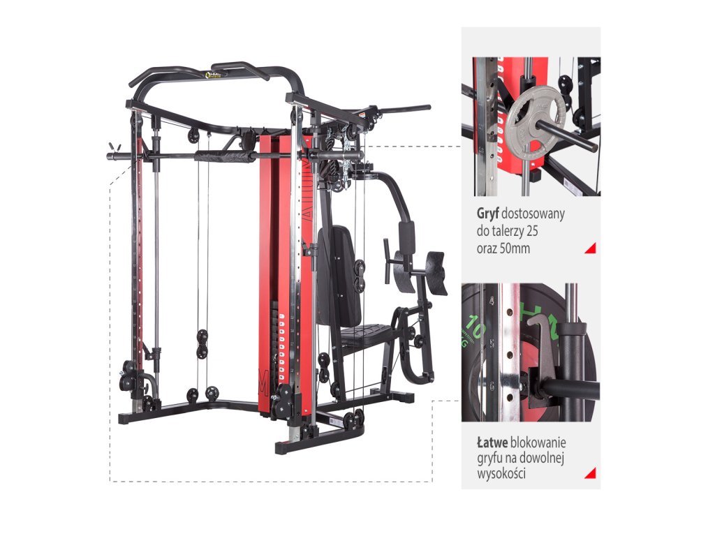 Stroj HMS Premium ATOM je kombinací posilovací věže a multipressu. Tato kombinace nabízí skvělé možnosti cvičení a umožňuje provádět komplexní trénink celého těla.