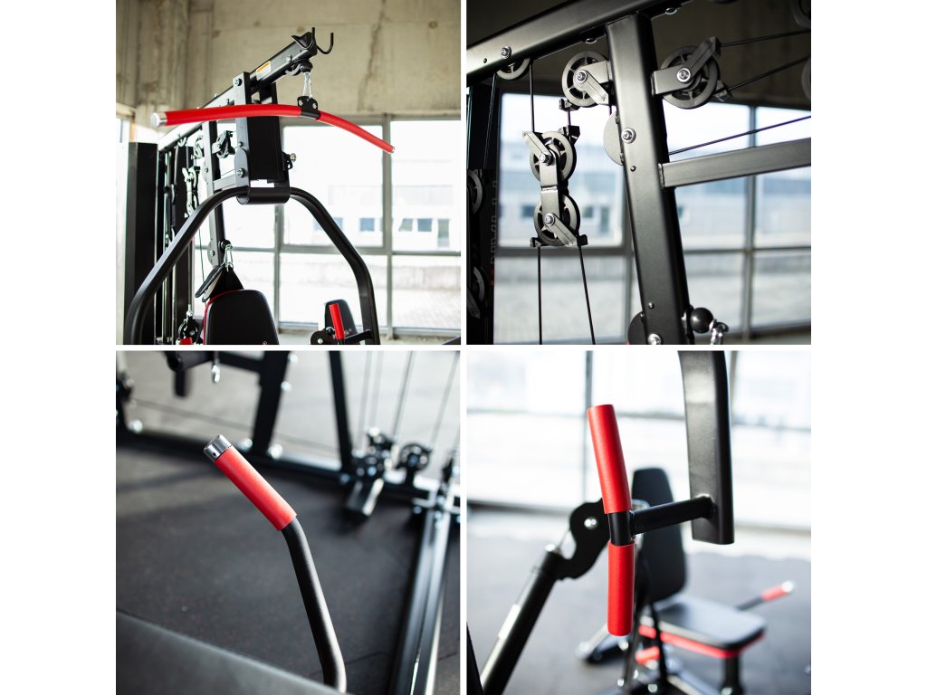 Věž je vybavena sadou závaží o hmotnosti 80 kg, kterou lze regulovat po 5 kg, což umožňuje přesně přizpůsobit zátěž tvým potřebám. Tři kladky – horní, střední a dolní – umožňují vykonávat různé cviky, které efektivně zapojí mnoho částí tvého těla.