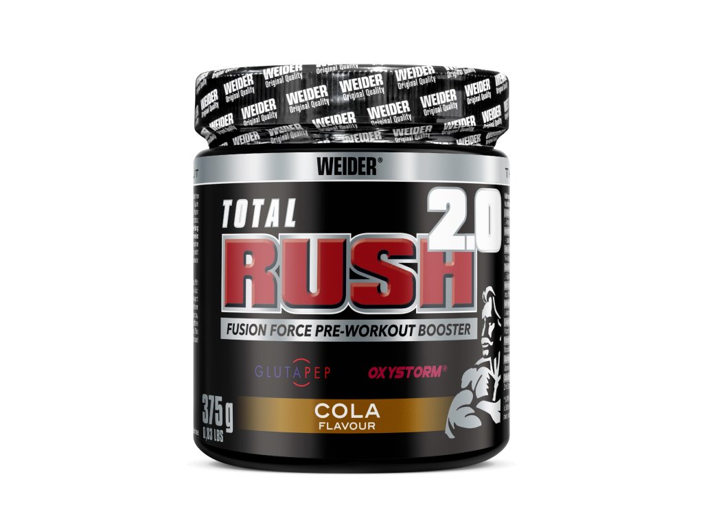 TOTAL RUSH2.0:doplněk stravy.Nápoj v prášku.Vhodný při fyzické zátěži,sportovních aktivitách,pro pokrytí výdajů při intenzivní svalové práci.Obsahuje kreatin,volné formy aminokyselin,kofein,extrakt ze zrn amarantu,prášek z listů rostliny gingko biloba,vitamíny,minerály a další složky(viz složení).Se sladidly.