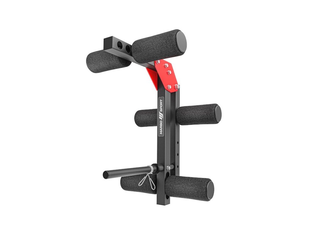 Adaptér předkopávání MARBO MH-A102 2.0 je určen k použití s lavicemi ze série MARBO Home. Adaptér se používá k posilování svalů dolních končetin, v sedě se předkopává, v leže se zakopává. Adaptér má 3 polohy pro nastavení výšky a každá z tyčí, ne které jsou navléknuty pěnové válce je možné nastavit do 3 poloh, adaptér si tak můžete dokonale přizpůsobit svým potřebám. Trn na závaží má délku 25 cm a průměr 25 mm a můžete na něj naložit jak běžné, tak olympijské kotouče. Závaží je jištěno pružinovou svorkou.