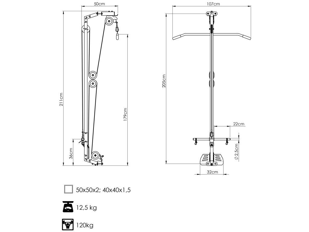 Horní a dolní kladka MS-W107 2.0 je profesionální rozšíření Power Racku MS-U112 2.0, které z něj vytváří plnohodnotnou multifunkční posilovací stanici. Umožňuje cílený trénink zad, ramen, paží, břicha i nohou s plynulým a přirozeným chodem.