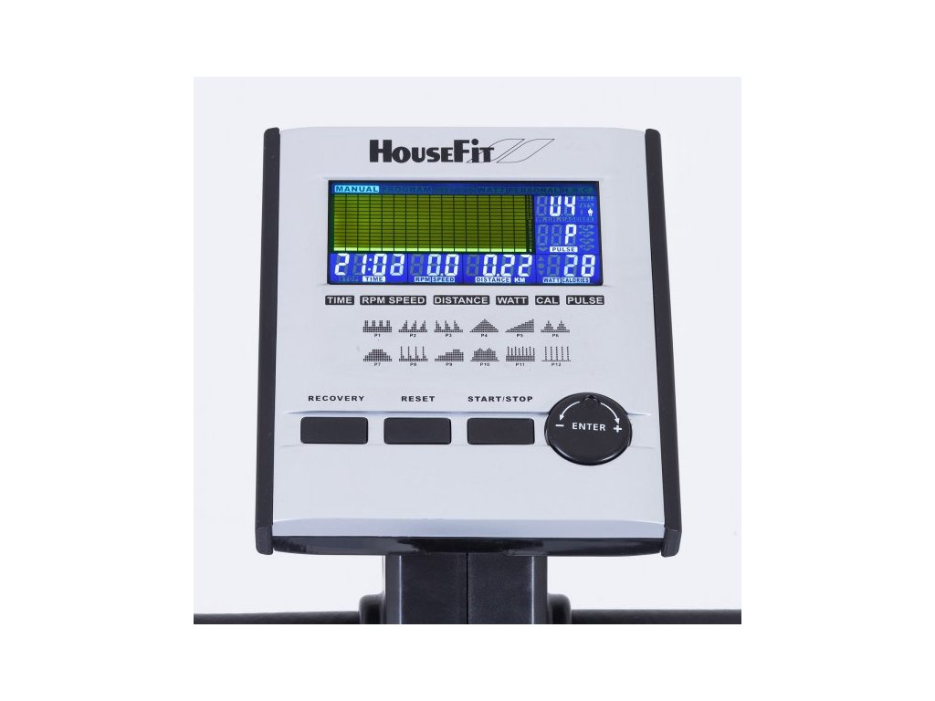 Ergometr HOUSEFIT TIRO 70 vychází z modelu TIRO 50, je ale navíc vybaven elektronickou regulací zátěže s možností programování. Tento ergometr zákazníkům nabízí kombinaci kvalitního ergonomického, ocelového rámu za velice příznivou cenu. Rámová konstrukce a výškově nastavitelná řidítka, tak zajistí pohodlné a správné posezení lidem s výškou až 200 cm. Vyvážený setrvačník o hmotnosti 9 kg, magnetická brzda a převod dopínaným řemenem zaručuje komfortní, plynulý a tichý chod i při větších zátěžích, osobám do hmotnosti 150 kg. Ergometr je kompletně na ložiscích (šlapací střed, setrvačník, dopínací kladka,...), což spolu s masivním rámem zajišťuje dlouhou životnost stroje. Ergometr TIRO 70 má elektronicky ovládanou magnetickou brzdu, s regulací zátěže v 16 stupních.