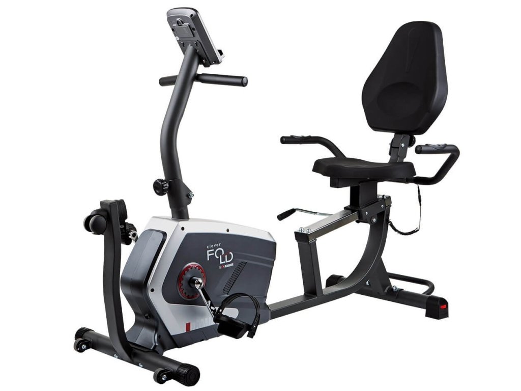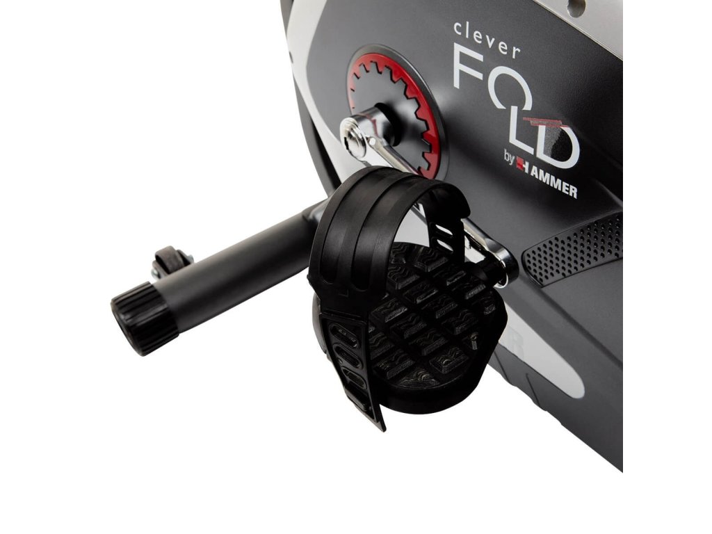 Hammer Clever Fold RC5 je horizontální skládací rotoped neboli recumbent určený především pro rehabilitaci a osoby se sníženou hybností. Díky ergonomicky tvarovanému sedadlu a výškově nastavitelnému opěradlu je trenažér šetrný k vašim zádům. Sedadlo lze pomocí páky snadno a rychle polohovat (vhodné pro menší i větší osoby). Při konstrukci stroje bylo dbáno na kvalitní mechaniku a optimální ergonomii pohybu, a to pro drobnější postavy od 155 cm i vyšší osoby až do 190 cm