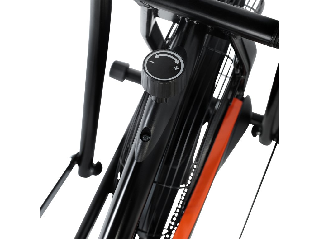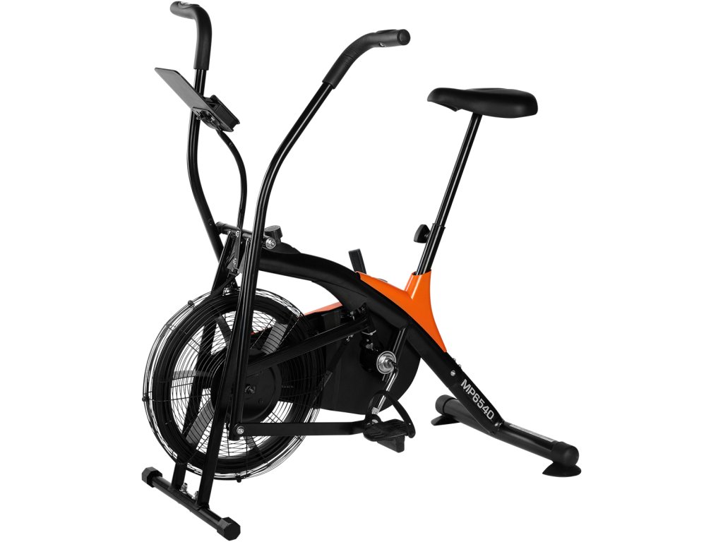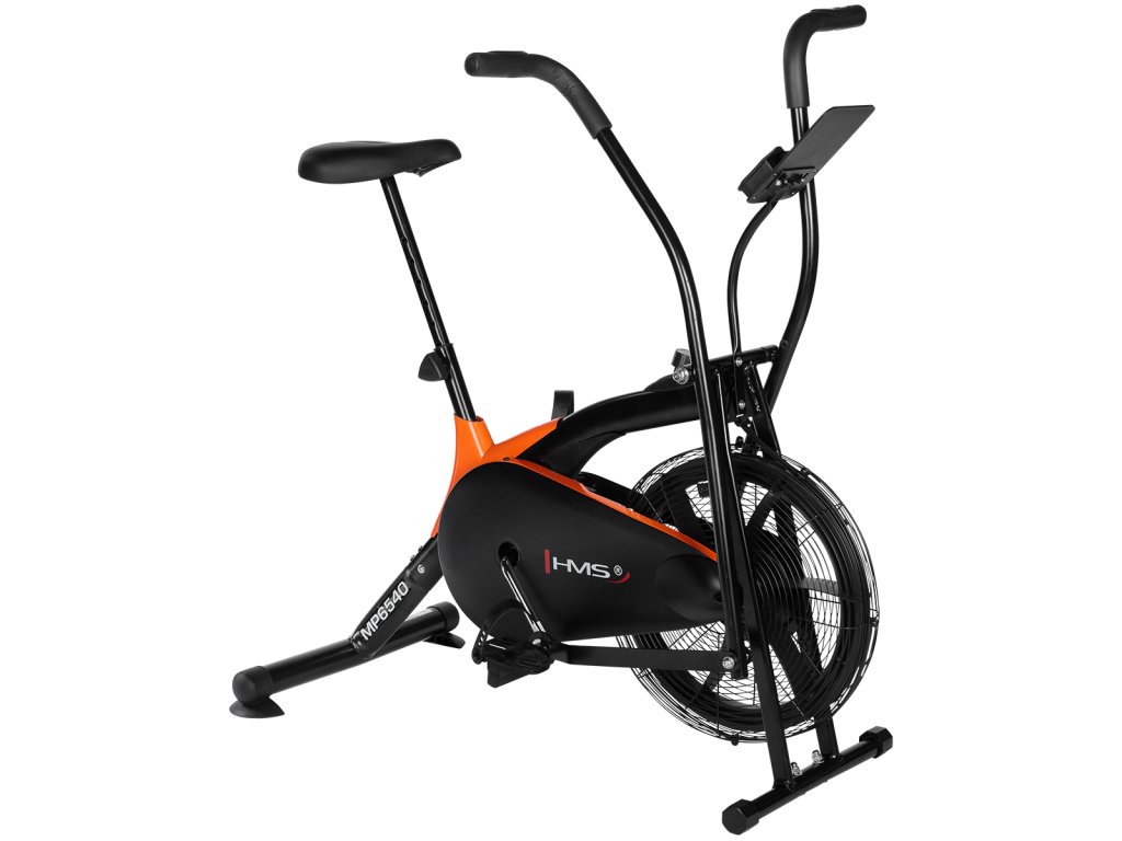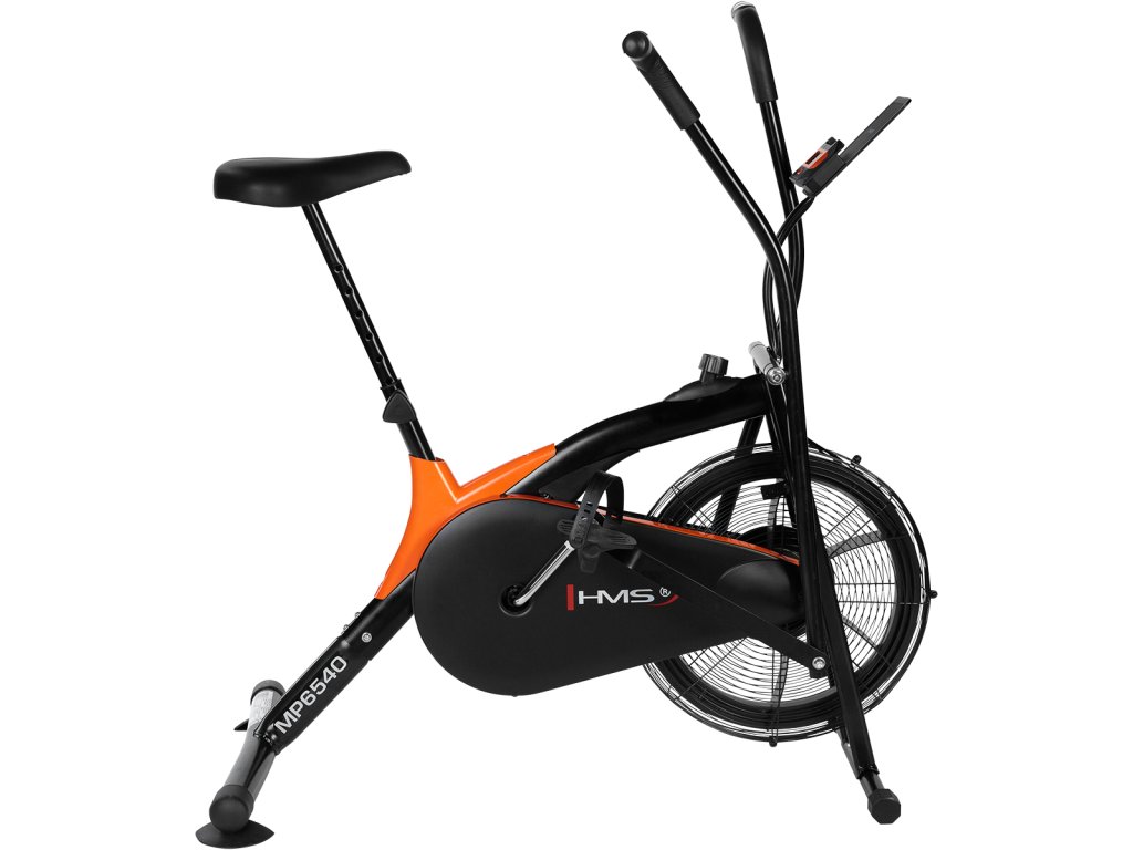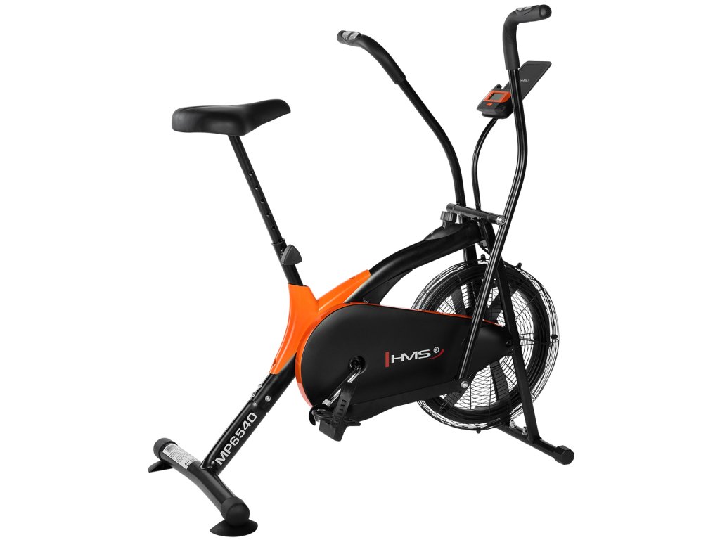 AIR BIKE HMS MP6540 je nejkomplexnější stoj určený ke kardio cvičení. Model používáný téměr ve všech crossfitových tělocvičnách, rehabilitačních zařízeních a profesionálních fitcentrech nyní i pro domácí prostředí. Ať už jste začátečník či závodní sportovec - tento model je vhodný jak pro vytrvalostní, tak i crossové tréninky. MP6540 je vybaven dvěma rukojeťmi, které připomínají trénink na crossovém trenažéru. Tento inovativní Air Bike tak umožňuje trénink celého těla na nejvyšší úrovni. Procvičuje se nejen aerobní a anaerobní oblast, nýbrž se posilují i svaly. Intenzivní tréninkové jednotky Vás budou nejen že bavit, nýbrž i extrémně podpoří výměnu tělesných látek, čímž vzroste i počet spálených kalorií. Air Bike poskytuje vysoce intenzivní tréninky celého těla při velmi plynulém průběhu pohybu, který nezatěžuje klouby. Trenažéry, kde je zátěž tvořena odporem vzduchu, jsou vybaveny lopatkovým kolem, které je přes převod spojedno s pedály. Během otáčení "ventilátoru" klade vzduch odpor lopatkám a tím je generován odpor, který se plynule zvětšuje se stoupající rychlostí. Model MP6540 je navíc ještě vybaven 2 kilogramovým, zátěžovým kolem na ose pedálů, teré je dodatečně bržďeno. Model disponuje LCD displejem ukazující nejen základní parametry jako je čas a vzdálenost, ale díky senzorům, ukazuje i puls. MP6540 je vyroben z nejkvalitnějších materiálů a i díky tomu je velice stabilní.