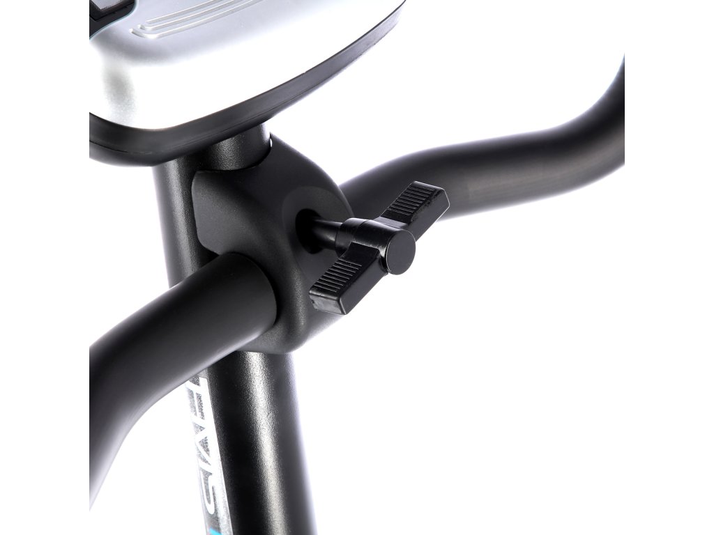 Sedlo je nastavitelné jak vertikálně, tak i horizontálně. Pohodlné pedály jsou opatřeny nastavitelnými řemínky. Řídítka jdou naklopit a naleznete na nich elektrody pro měření tepové frekvence.
