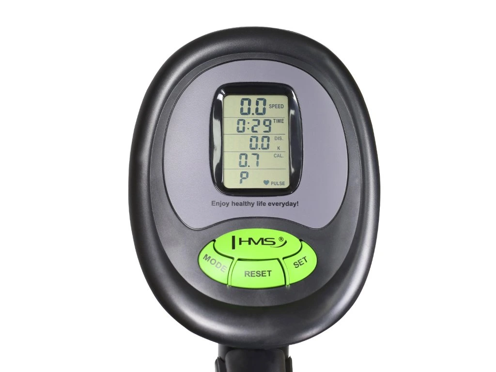 Sedlo je nastavitelné jak vertikálně, tak i horizontálně. Pohodlné pedály jsou opatřeny nastavitelnými řemínky. Řídítka jdou naklopit a naleznete na nich elektrody pro měření tepové frekvence.