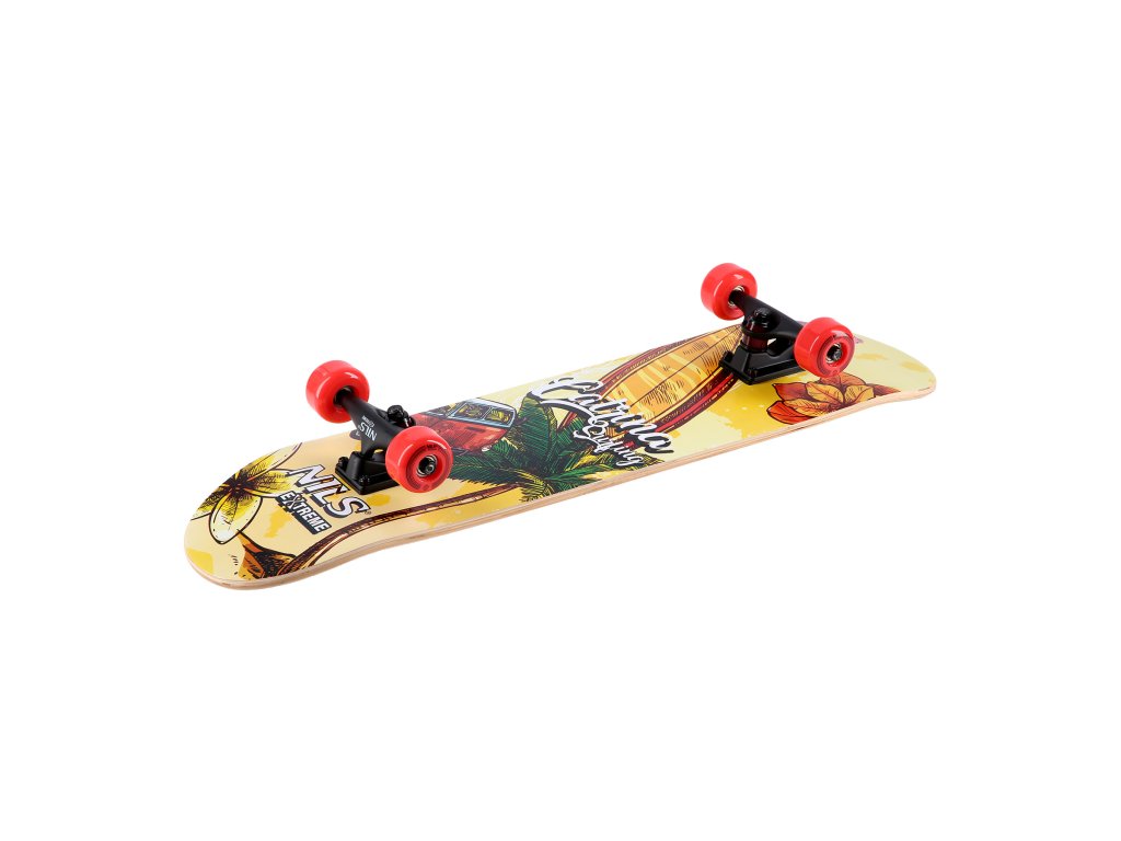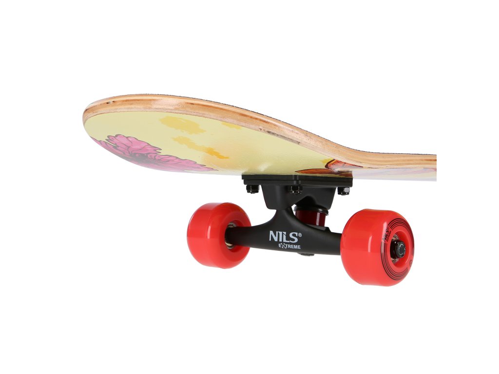 Skateboard je vyroben z 9-vrstvé laminované překližky. Deska je speciálně vyztužená, tvarovaná a leštěná, což zaručuje vysokou pevnost v kombinaci s pružností. Její horní část je pokryta smirkovým papírem (tzv. griptape) s logem NILS Extreme. Použití tohoto materiálu zvyšuje přilnavost bot.
