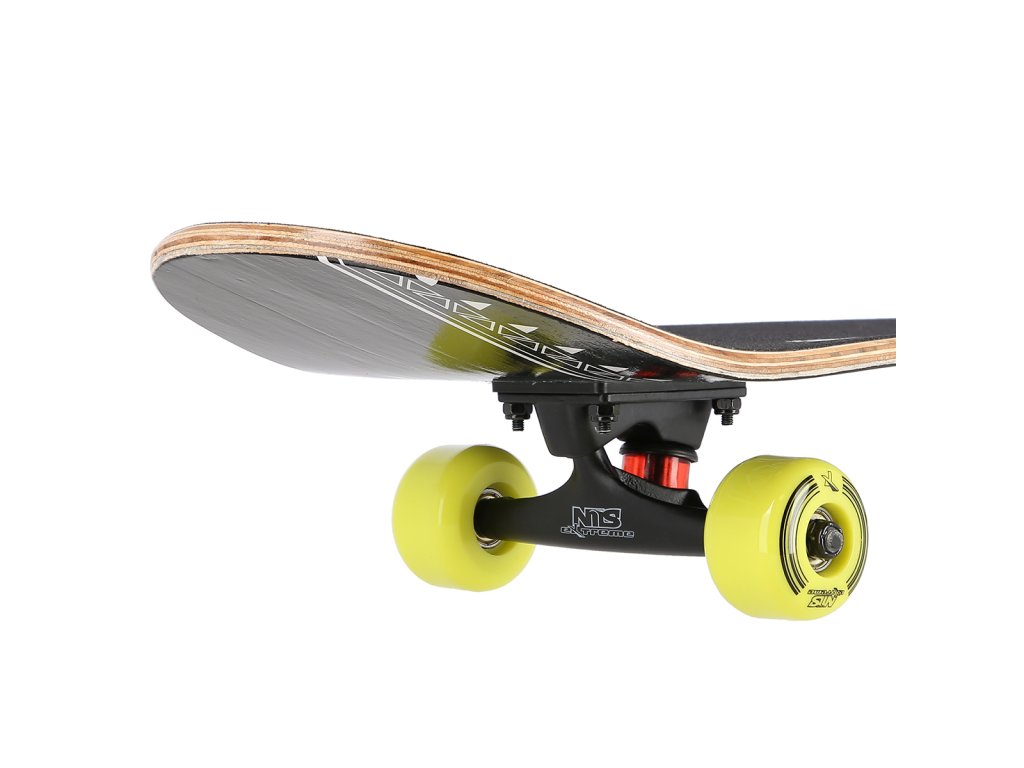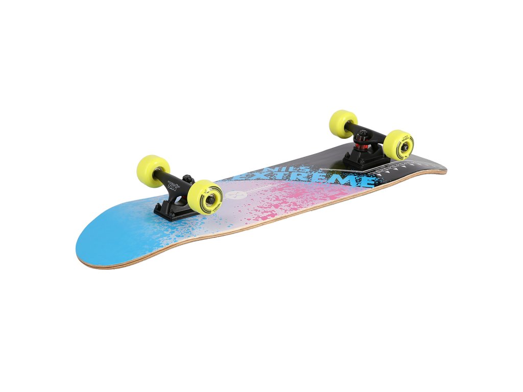 Skateboard NILS Extreme CR3108SA Stain je vyveden v v moderním a poutavém designu. Profilovaný deck je vyroben z 9-ti vrstev laminované, leštěné překližky, tento materiál je odolný a pružný. Horní strana je opatřena černým gripem s logem značky.