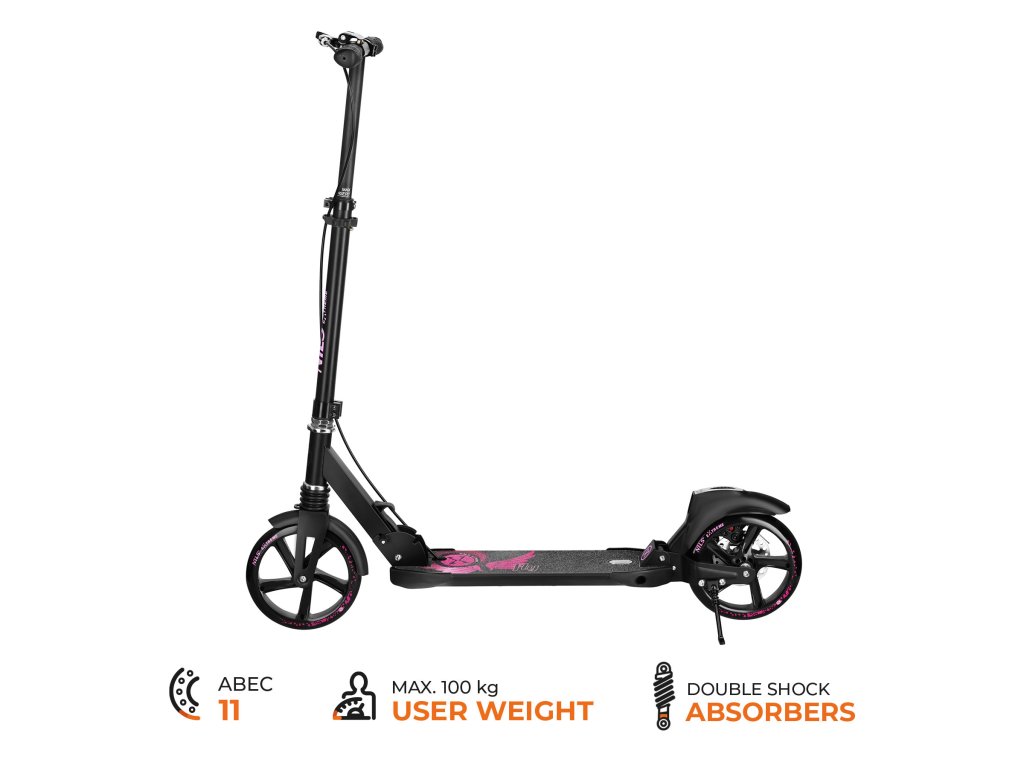 Kola o průměru 200 mm umožňují hladkou jízdu na asfaltu, chodnících i dlažbě. Odolná konstrukce z kombinace oceli a hliníku zvyšuje bezpečnost a životnost, přičemž si koloběžka zachovává optimální hmotnost.