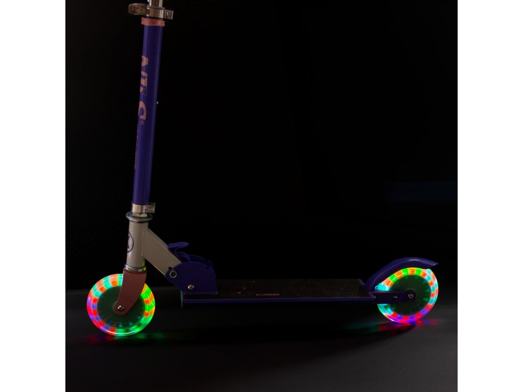 NILS Extreme HD120L je koloběžka určená pro děti a teenagery. Vyniká originálním designem a svítícími LED kolečky, která jsou nejen estetickým doplňkem, ale také prvkem zvyšujícím bezpečnost díky lepší viditelnosti. Koloběžka je lehká a její kompaktní rozměry ji předurčují pro děti a teenagery. Další výhodou je možnost složit koloběžku na malý rozměr, což usnadňuje skladování a přepravu. HD120L má nastavitelná řídítka, která umožňují přizpůsobit jejich výšku výšce uživatele. Koloběžka je vybavena ložisky ABEC7, která zaručují svižnou a plynulou jízdu.